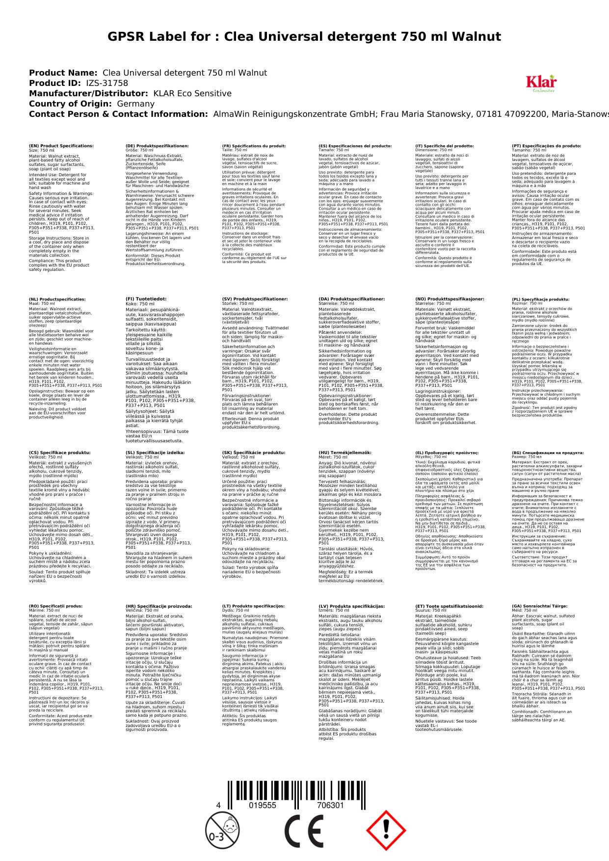 | Brand | KLAR Eco Sensitive |