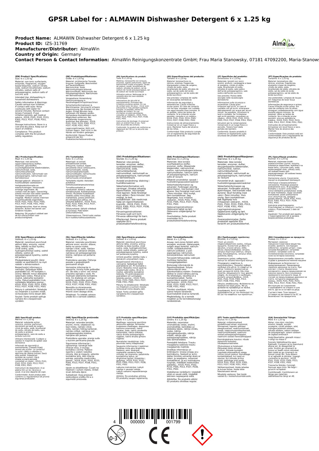 Stellen Sie eine Frage, um mehr über das Produkt zu erfahrenAlmawin Maschinenspülmittel 6 x 1,25 kg