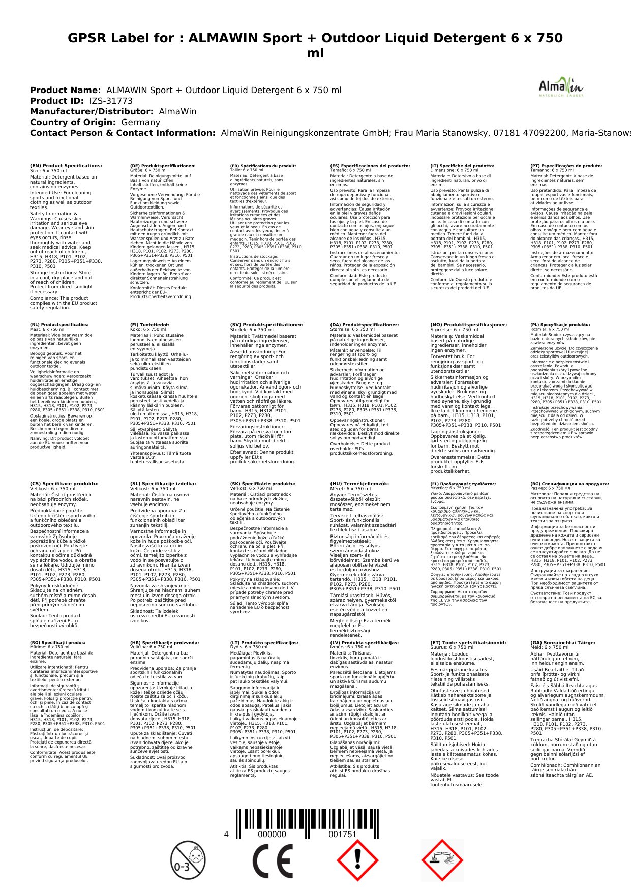 ALMAWIN Sport + Outdoor Flüssigwaschmittel 6 x 750 ml