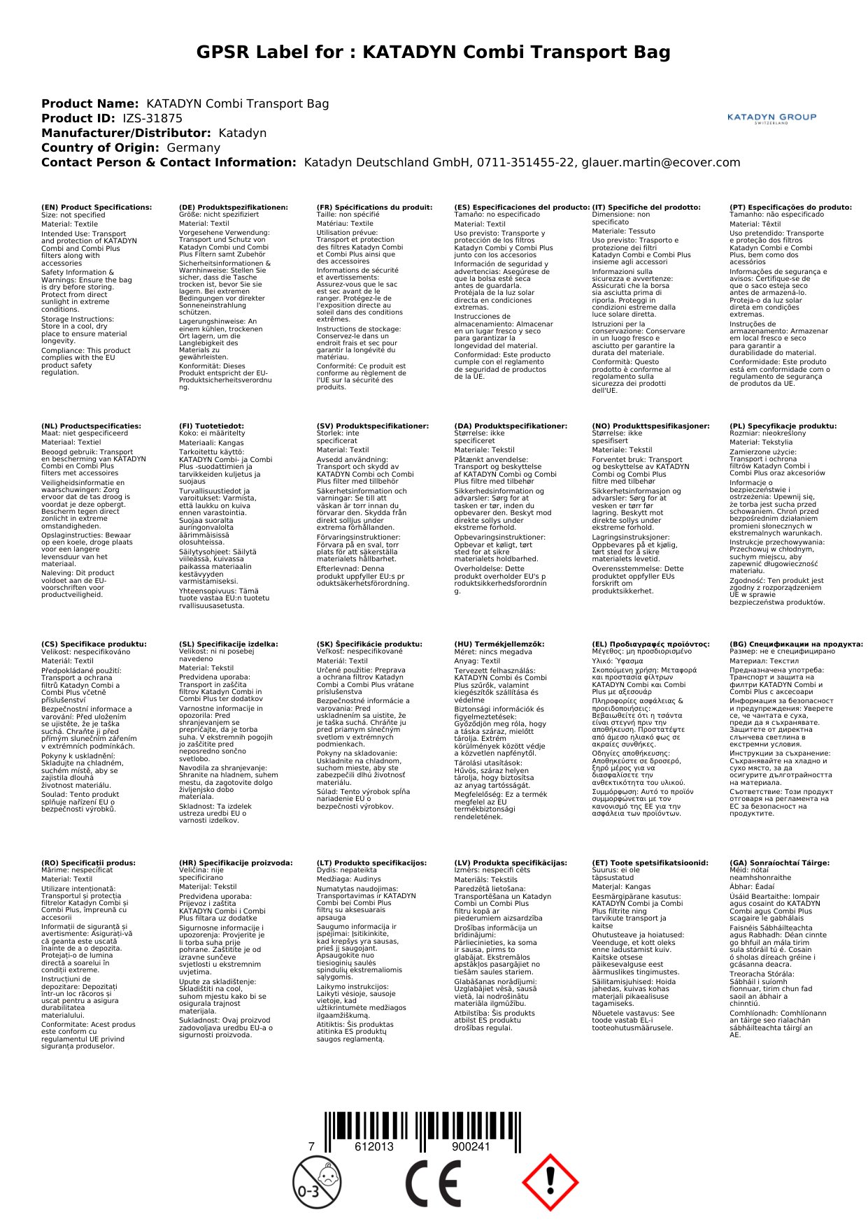 Katadyn Combi Transporttasche