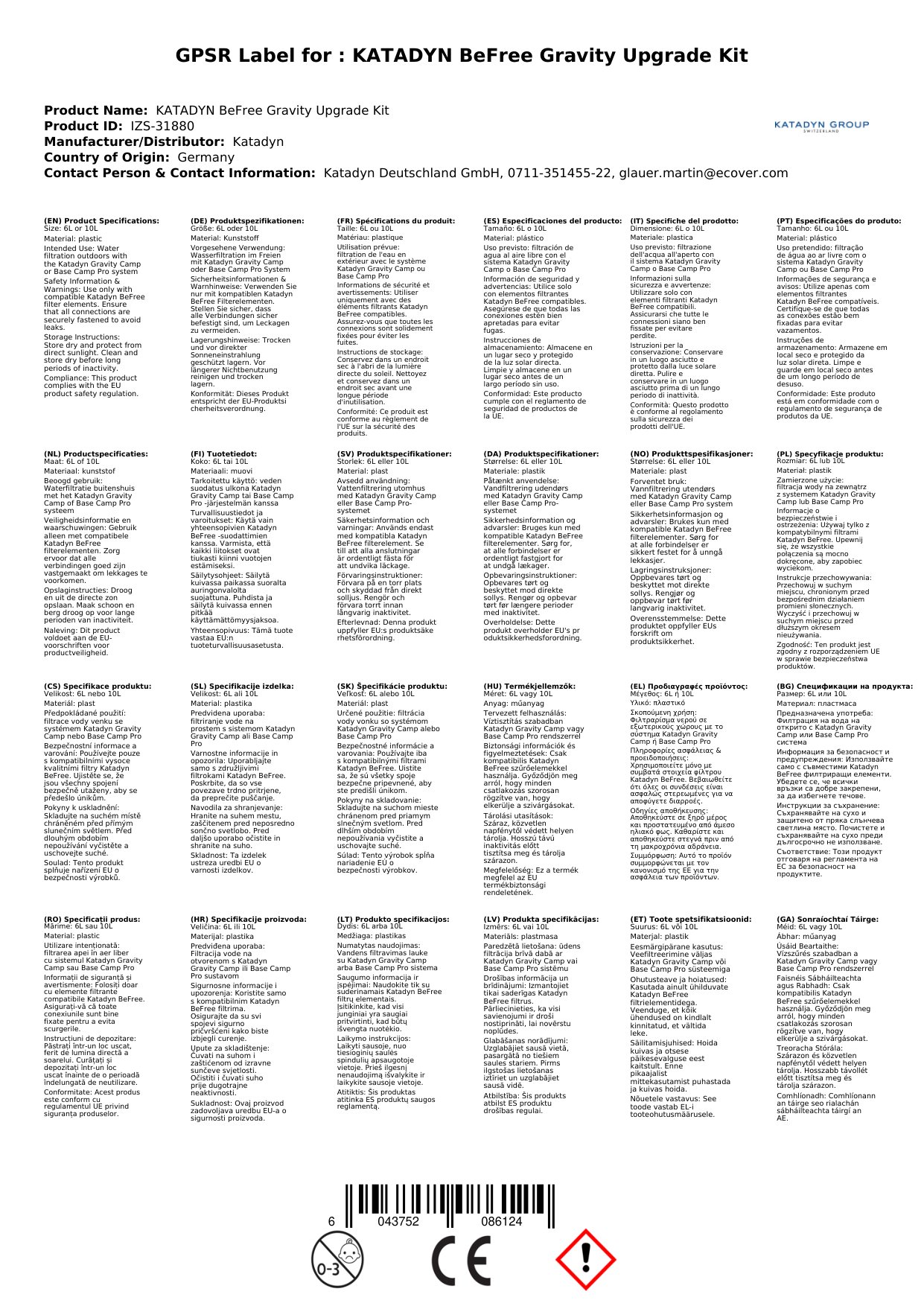 - Verwandelt den Katadyn Gravity Camp oder Base Camp Pro in ein Katadyn BeFree Gravity Wasser Filter System.