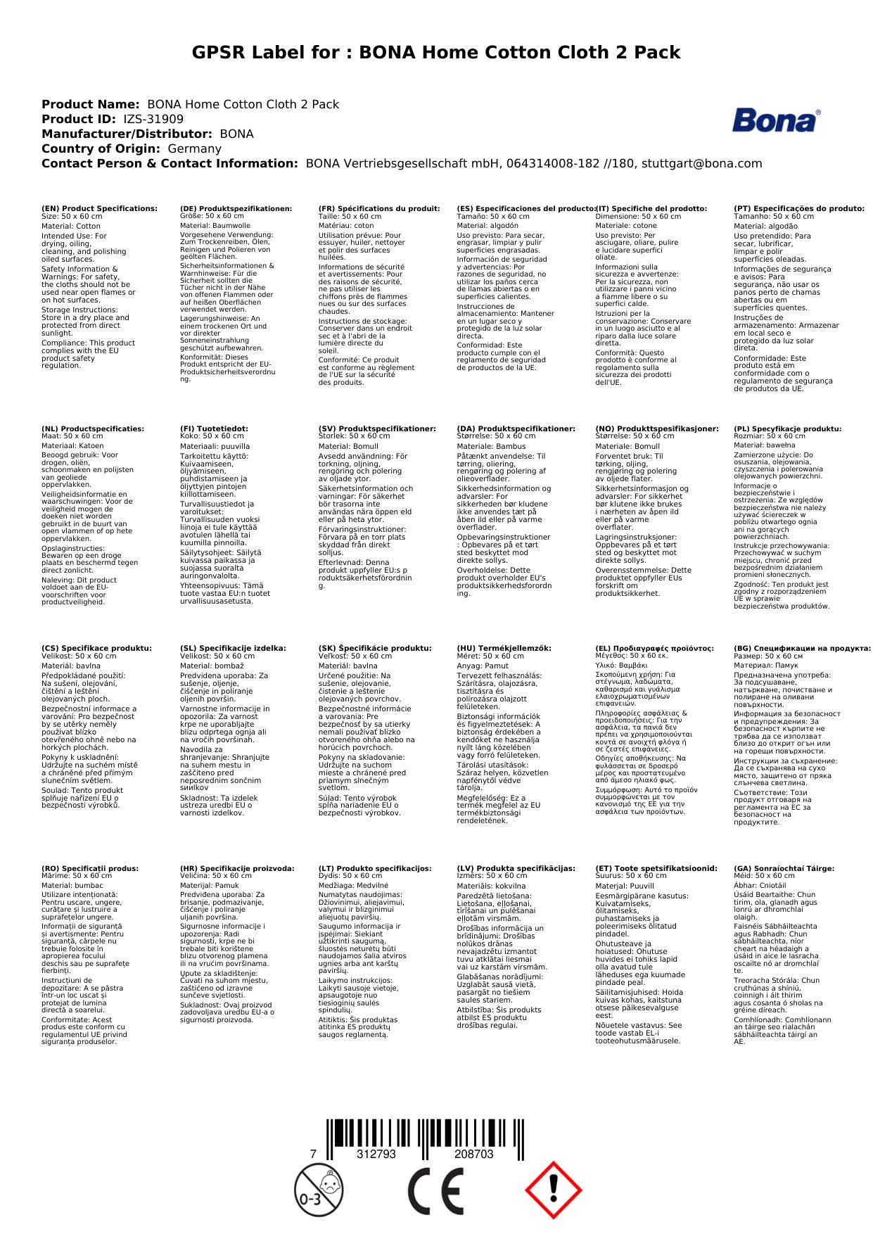 Stellen Sie eine Frage, um mehr über das Produkt zu erfahrenBona Home Baumwolltuch 2er Packung (50 x 600 mm)