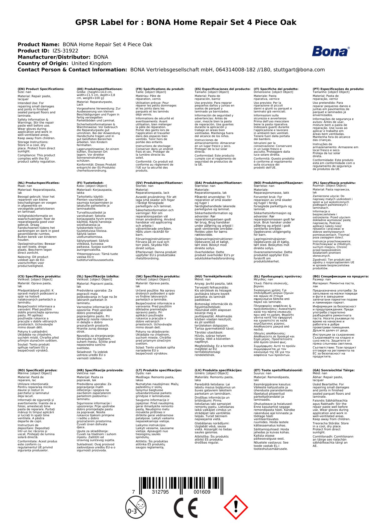BONA Home Reparatur Set 4 teilig Eiche