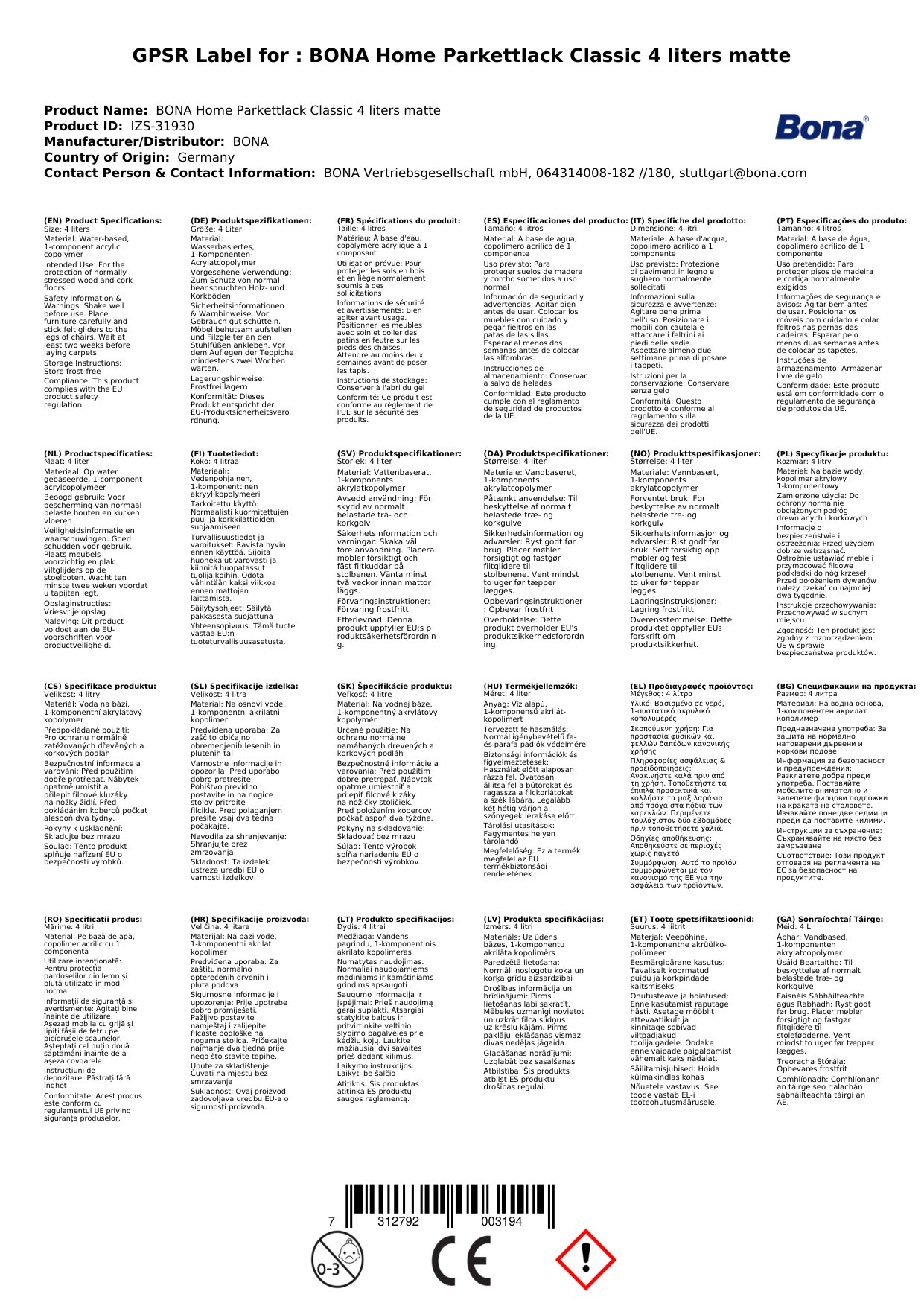 | Brand | BONA |