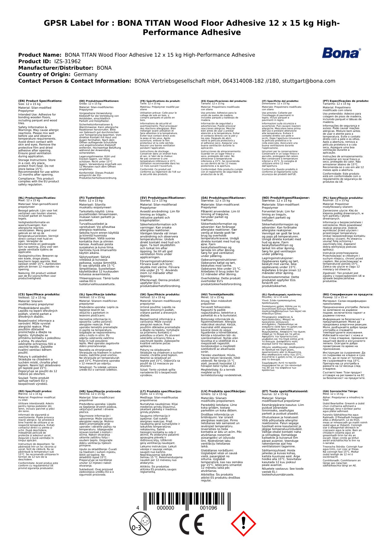 Stellen Sie eine Frage, um mehr über das Produkt zu erfahrenBona Titan Parkettklebstoff 12 x 15 kg Hochleistungsklebstoff