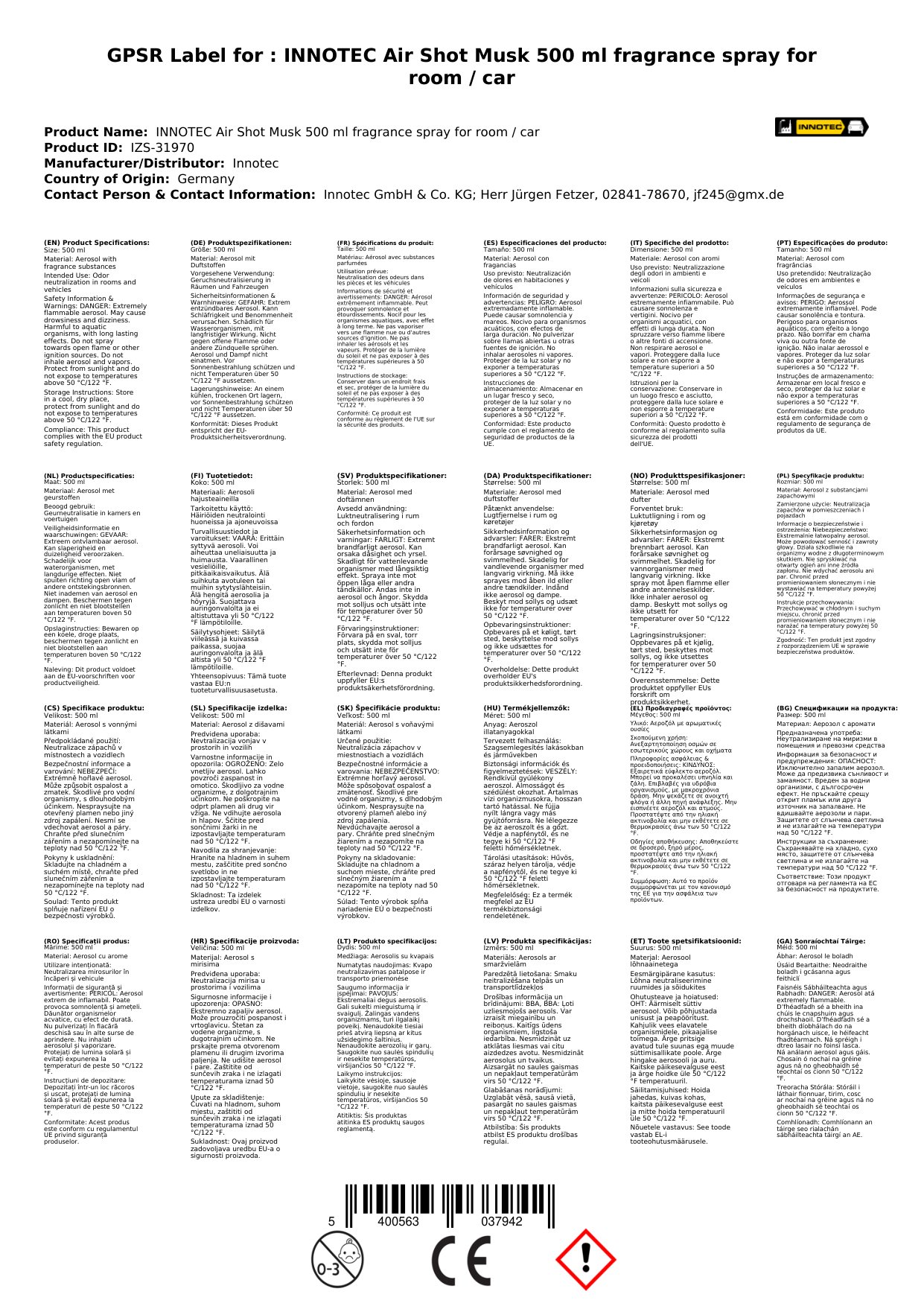 INNOTEC Air Shot Musk 500 ml Duftspray für Raum / Auto