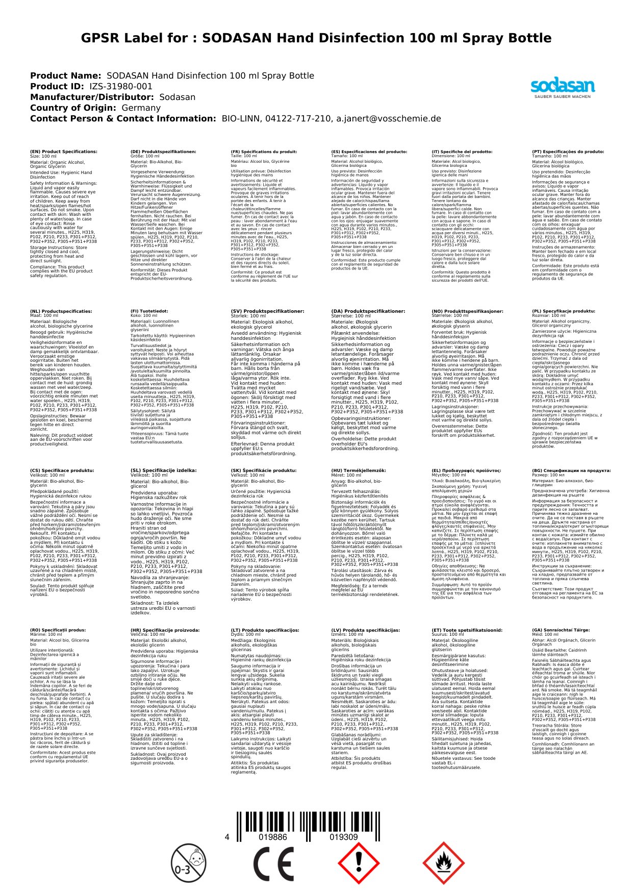 Sodasan Händedesinfektion 100 ml Fingerzerstäuber