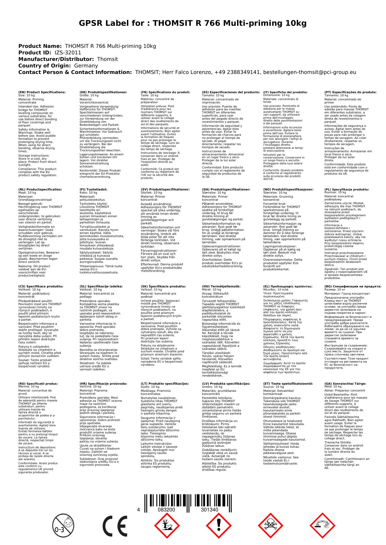 Auch einsetzbar vor der Direktklebung von Bodenbelägen und Parkett mit THOMSIT-Dispersions- und 2-K-PUR_x0002_Klebstoffen auf geeigneten Untergründen. Nicht verwenden auf Sulfitablauge-und Weichbitumenklebstoffen.