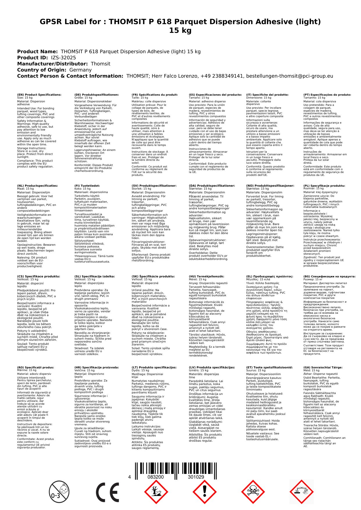 THOMSIT P 618 Parkett-Dispersionskleber (hell) 15 kg - GHS09 THOMSIT P 618 Parkett-Dispersionskleber (hell) 15 kg - GHS07 THOMSIT P 618 Parkett-Dispersionskleber (hell) 15 kg - GHS06 THOMSIT P 618 Parkett-Dispersionskleber (hell) 15 kg - GHS05