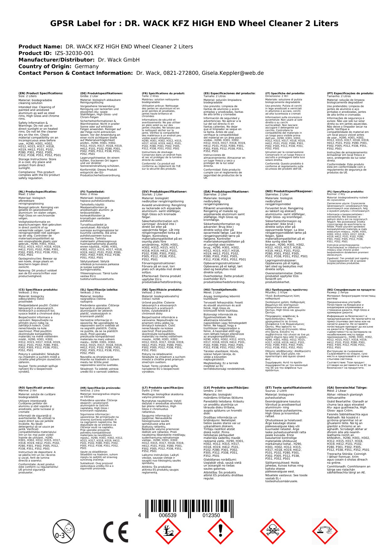 DR. WACK KFZ HIGH END Felgenreiniger