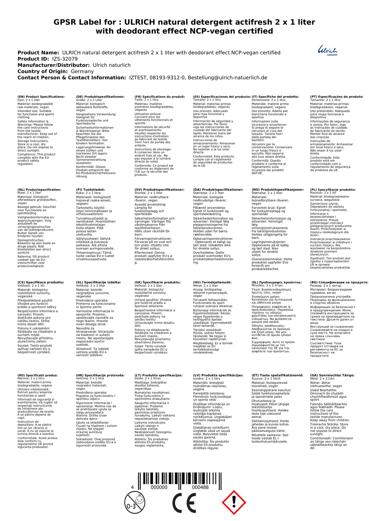 Unser Ulrich natürlich Waschmittel actifresh mit Deo-Effekt ist von ECO-Control nach den Richtlinien des neuesten Nature Care Product Standard ( NCPS ) als NCP-vegan eingestuft und zertifiziert.
