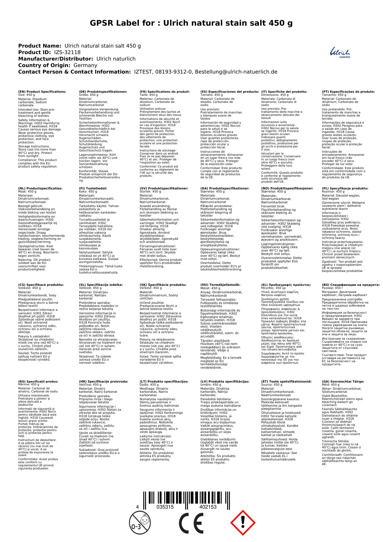 Stellen Sie eine Frage, um mehr über das Produkt zu erfahrenULRICH Fleckensalz 450 g