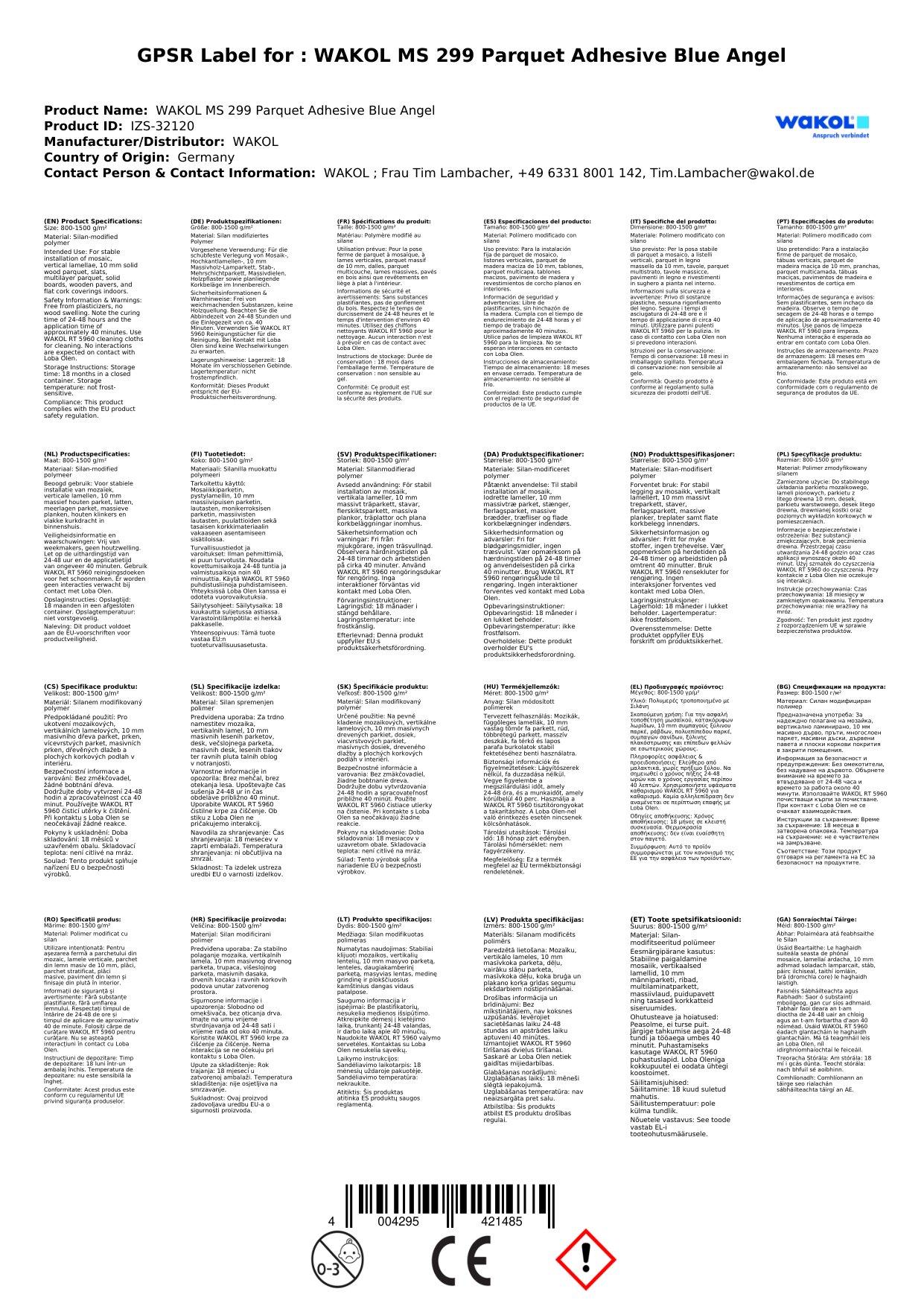 WAKOL MS 299 Parkettklebstoff blauer Engel