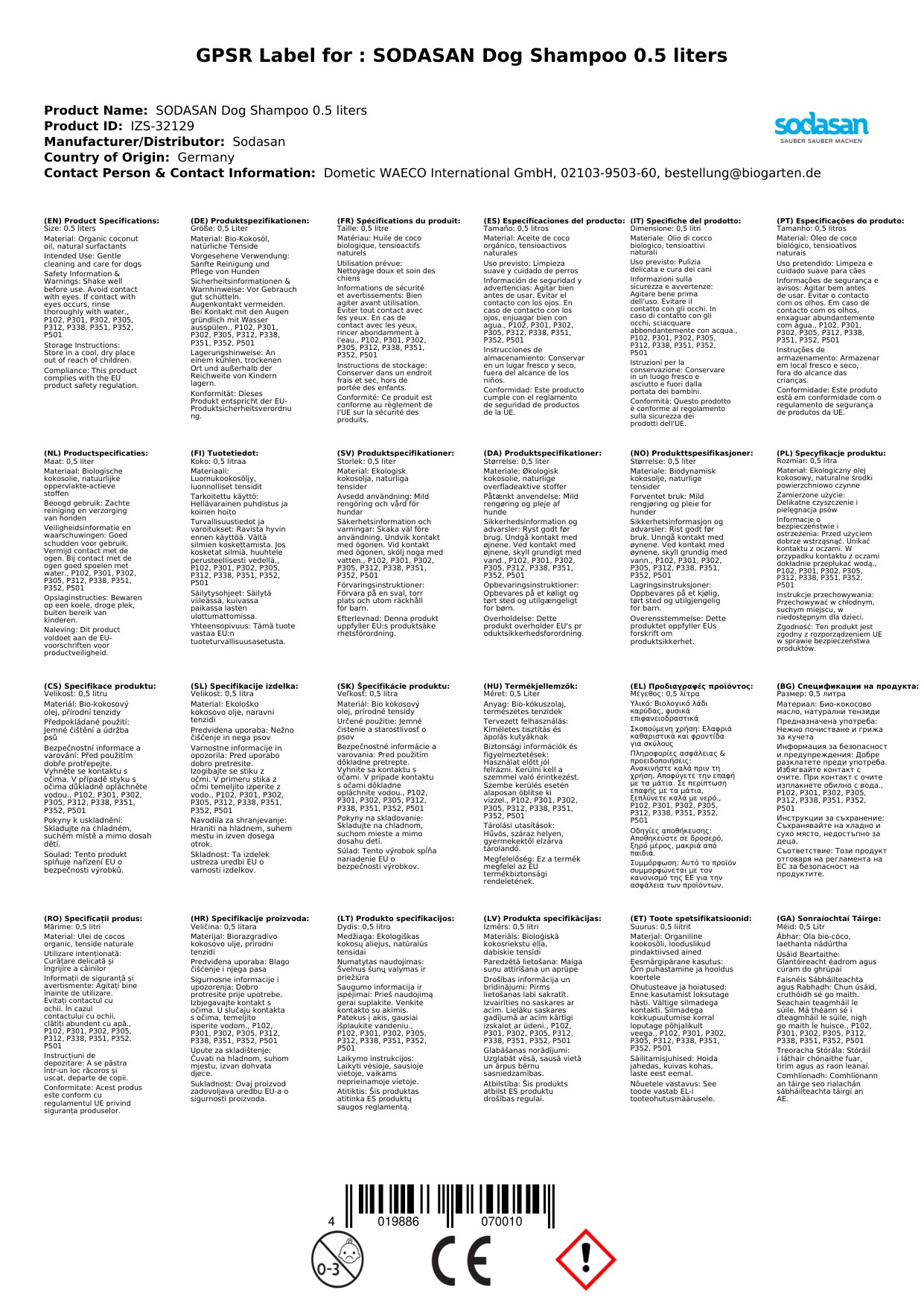 Dieses hochwertige ökozertifizierte Shampoo ist speziell für Hunde konzipiert.In gewohnter sodasan Qualität ohne synthetische Duft-, Farb- und Konservierungsstoffe,
