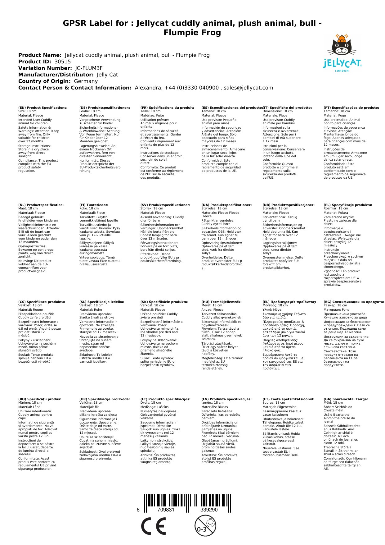 - Flumpie Frog entspricht den europäischen Sicherheitsnorm EN71 Teile 1, 2 und 3 für alle Altersgruppen und ist von Geburt an sicher für Kinder verwendbar.