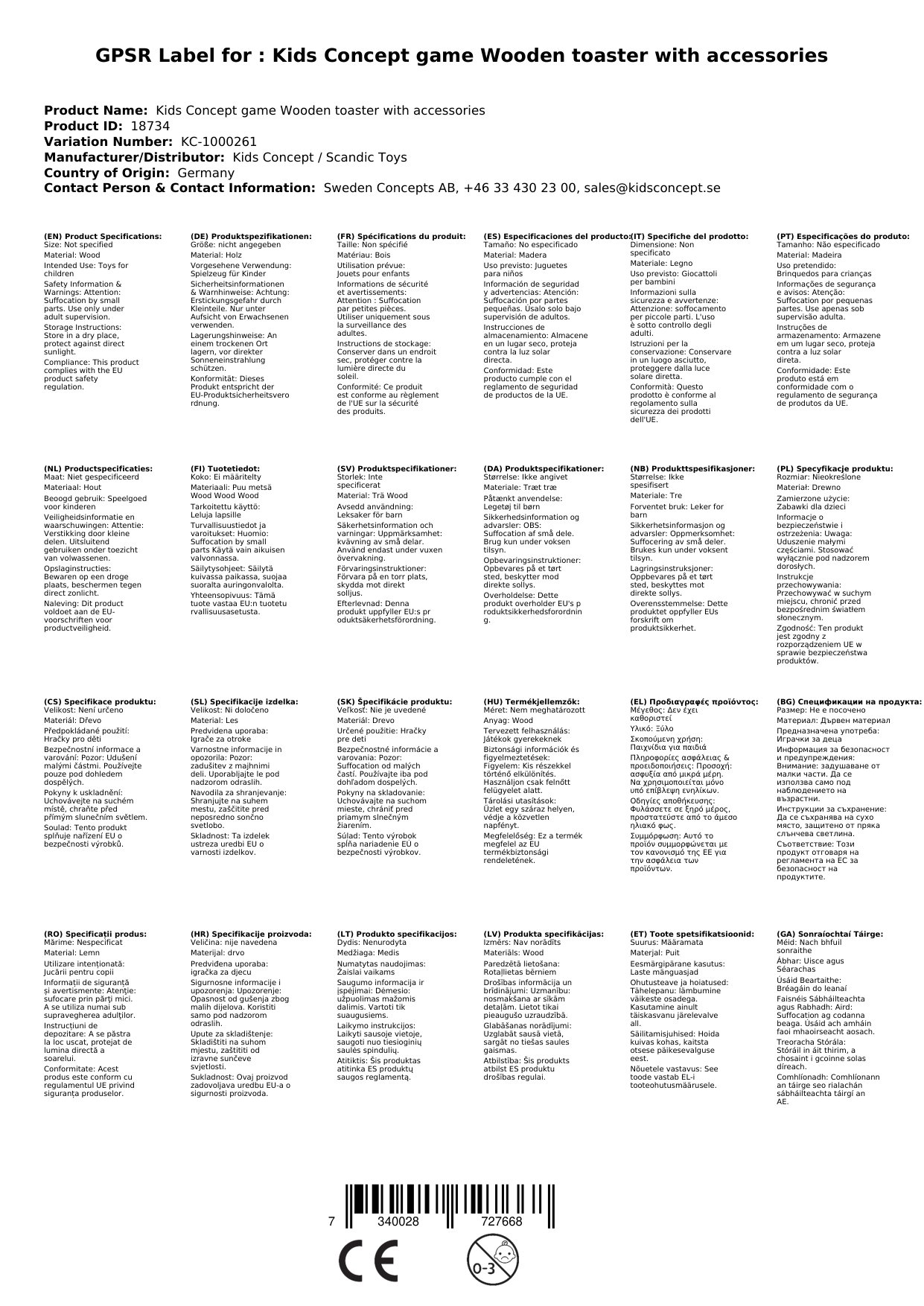 Kids Concept Spiel Toaster aus Holz mit Zubehör