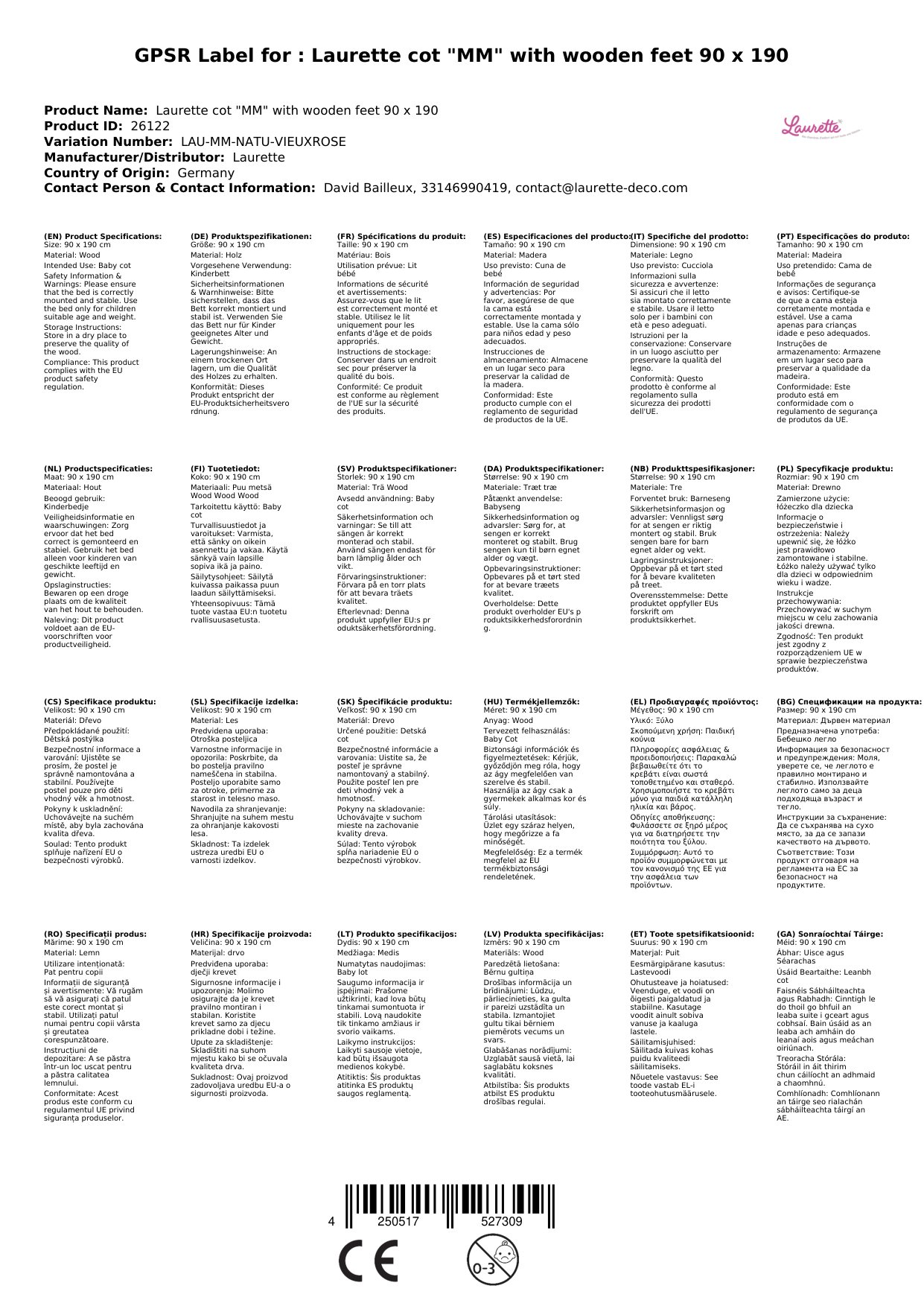 Wir freuen uns darüber, dass wir Ihnen dieses herrliche Kinderbett 'MM' von Laurette präsentieren können.