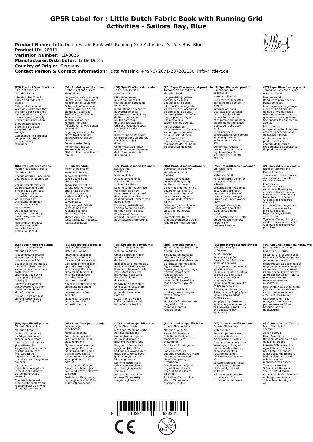 Stellen Sie eine Frage, um mehr über das Produkt zu erfahrenLittle Dutch Kollektion Sailors Bay: Stoffbuch für Laufgitter mit Aktivitäten