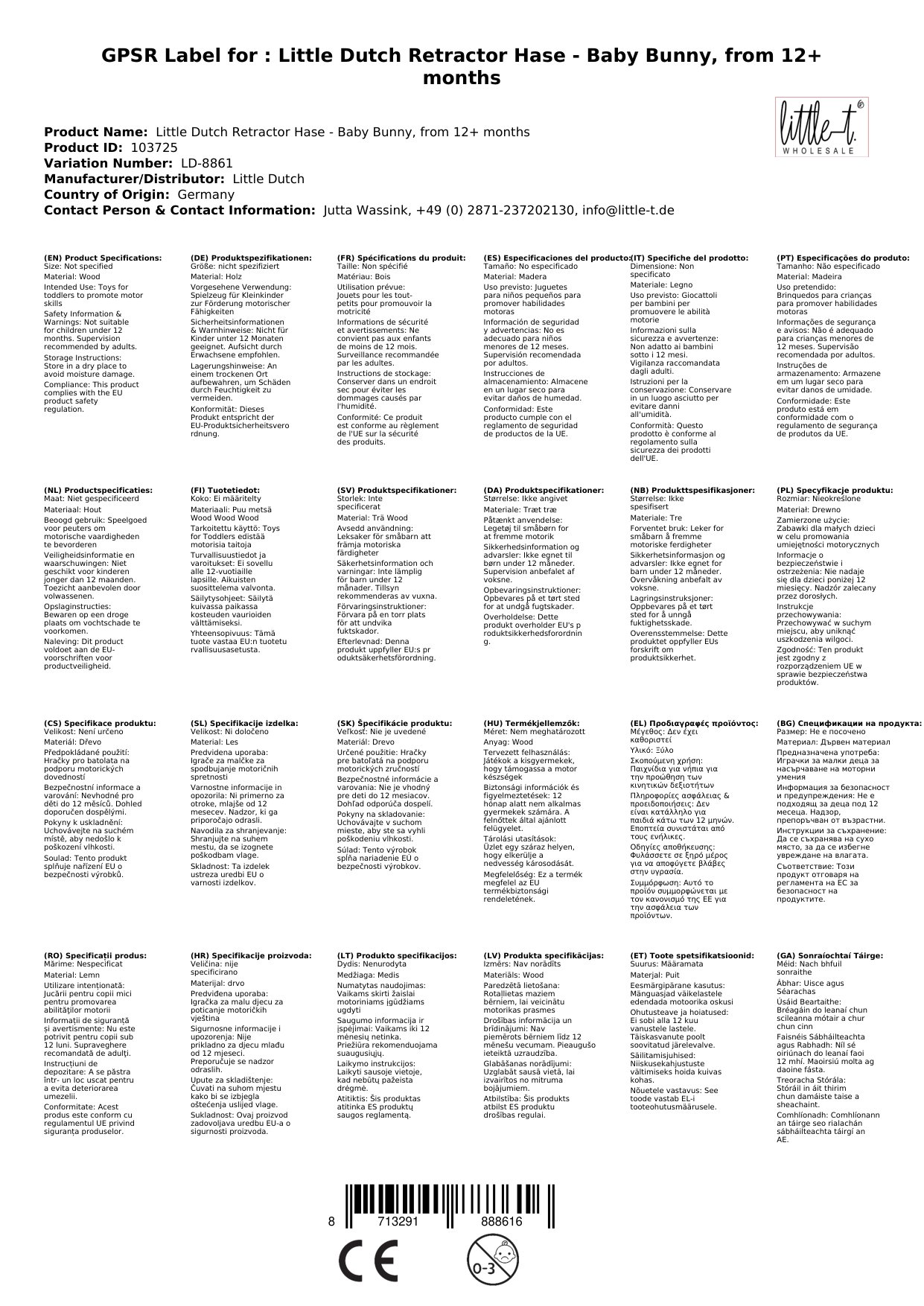 Das nachziehbare Hasenkaninchen von Little Dutch wurde unter Berücksichtigung der Sicherheit hergestellt und entspricht den Sicherheitsstandards EN-71-1-2-3, sodass Eltern beruhigt sein können. Das empfohlene Alter für dieses Spielzeug beträgt 12+ Monate, sodass es für kleine Kleinkinder geeignet ist, die gerade erst anfangen, die Welt um sich herum zu erkunden.
