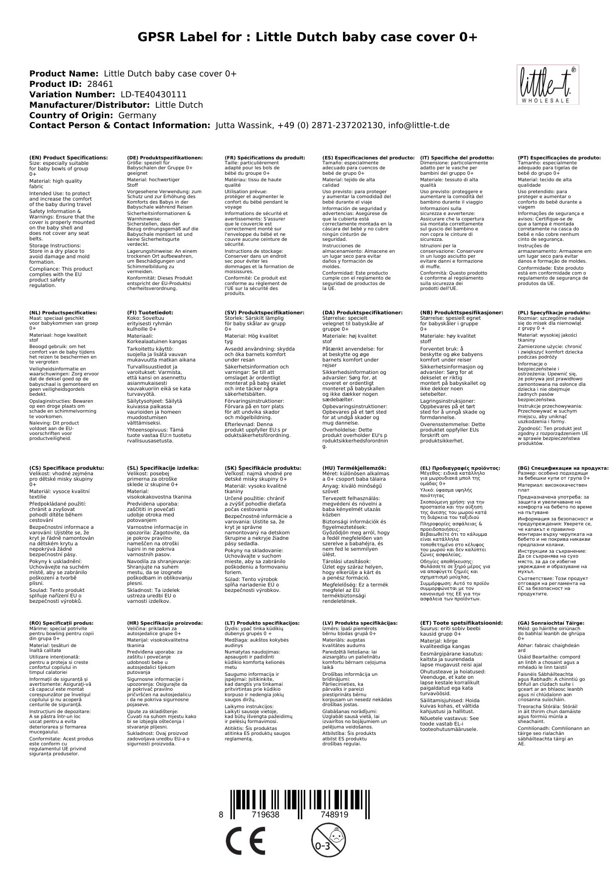 - Kompatibel mit der Babyschale 0+ von Little Dutch
