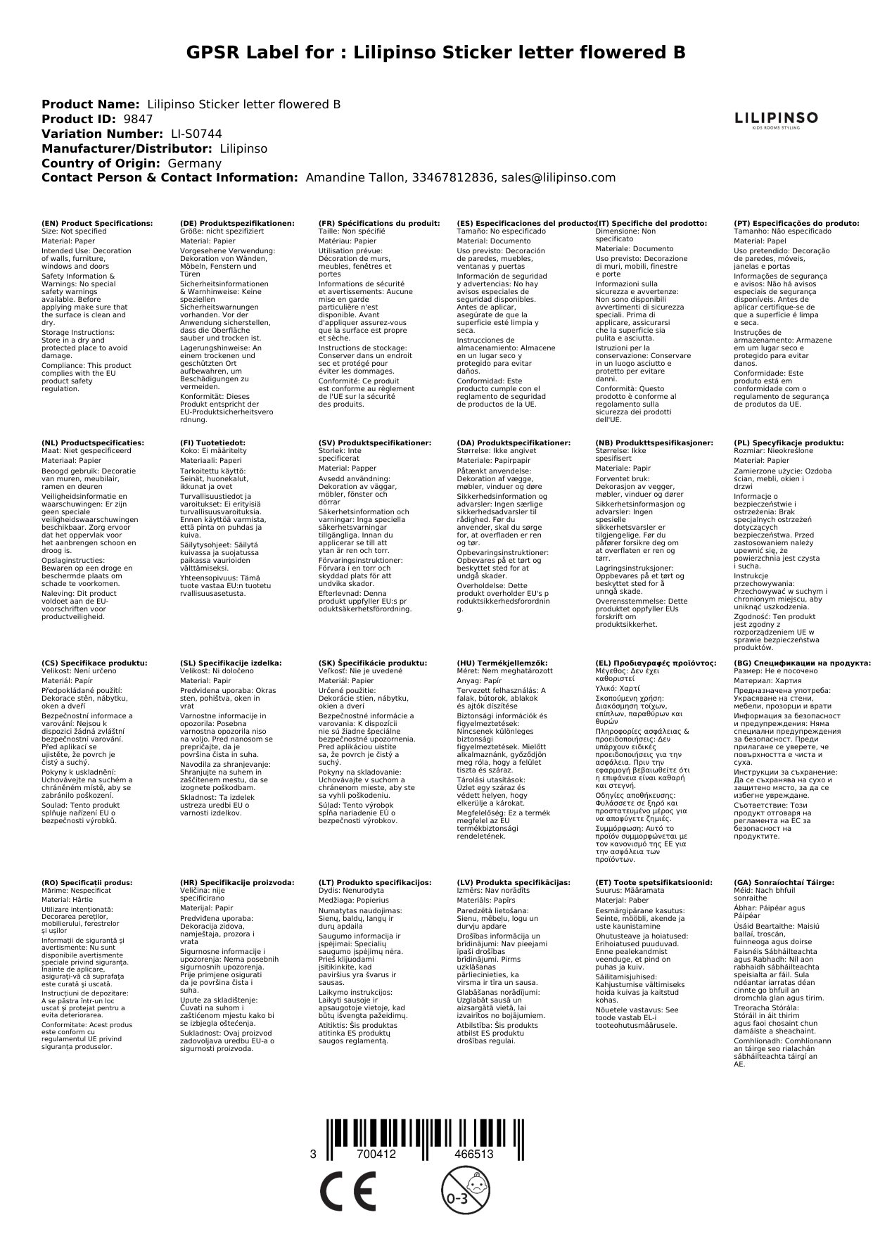 Der Sticker wird für Sie in Frankreich bei Lilipinso bestellt, wenn er bei uns nicht auf Lager ist.