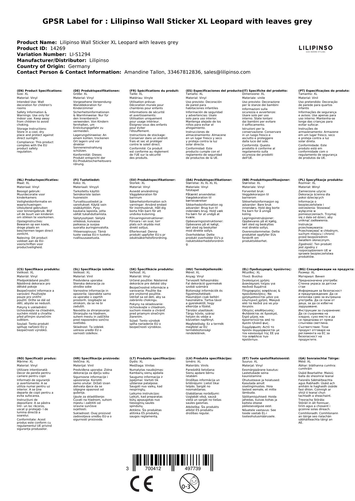 Die Sticker werden für Sie in Frankreich bei Lilipinso bestellt, wenn sie bei uns nicht vorrätig sind. Wir verpacken sie liebevoll für Sie und lassen Sie mittels einer Mail wissen, sobald das Paket unser Lager verlässt.