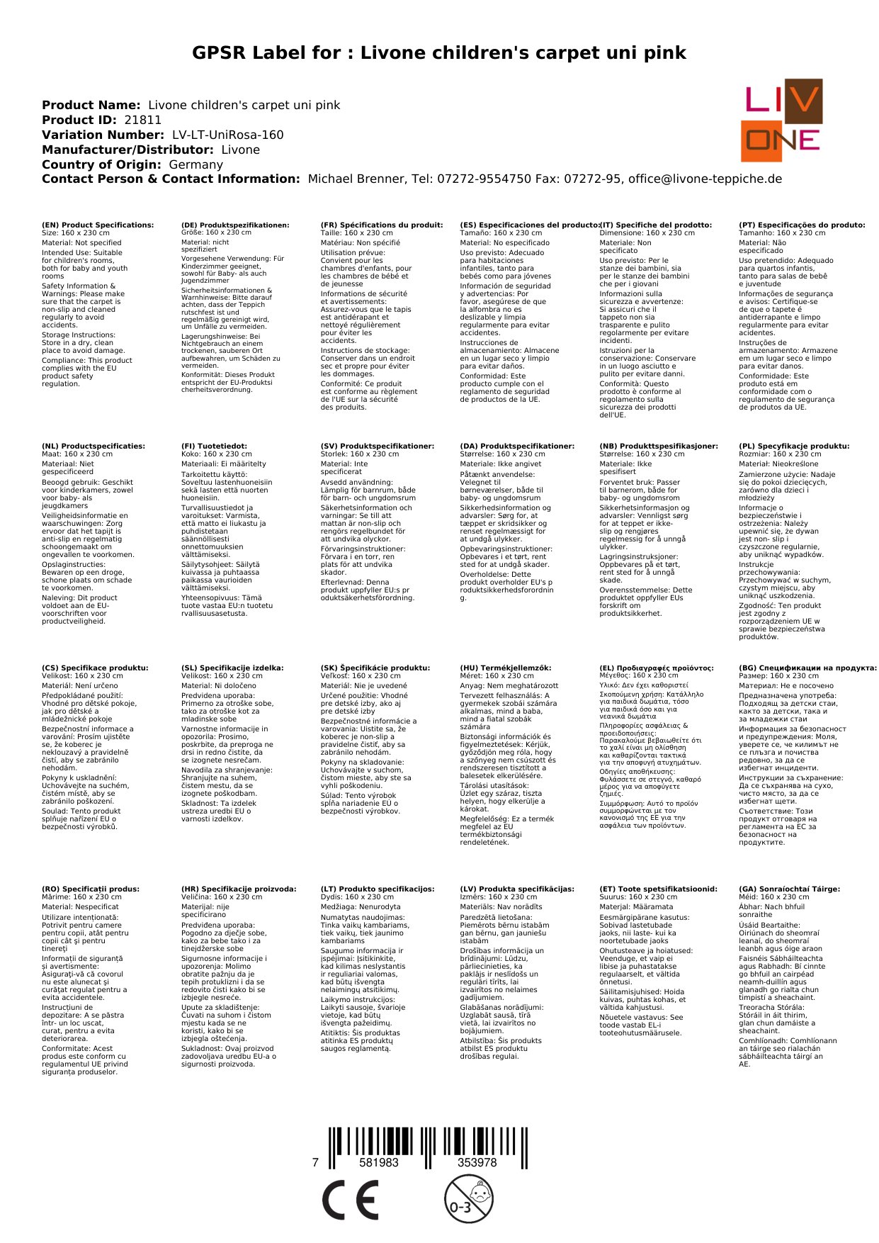 Stellen Sie eine Frage, um mehr über das Produkt zu erfahrenHier sehen Sie einen zauberhaften Kinderteppich von Livone.