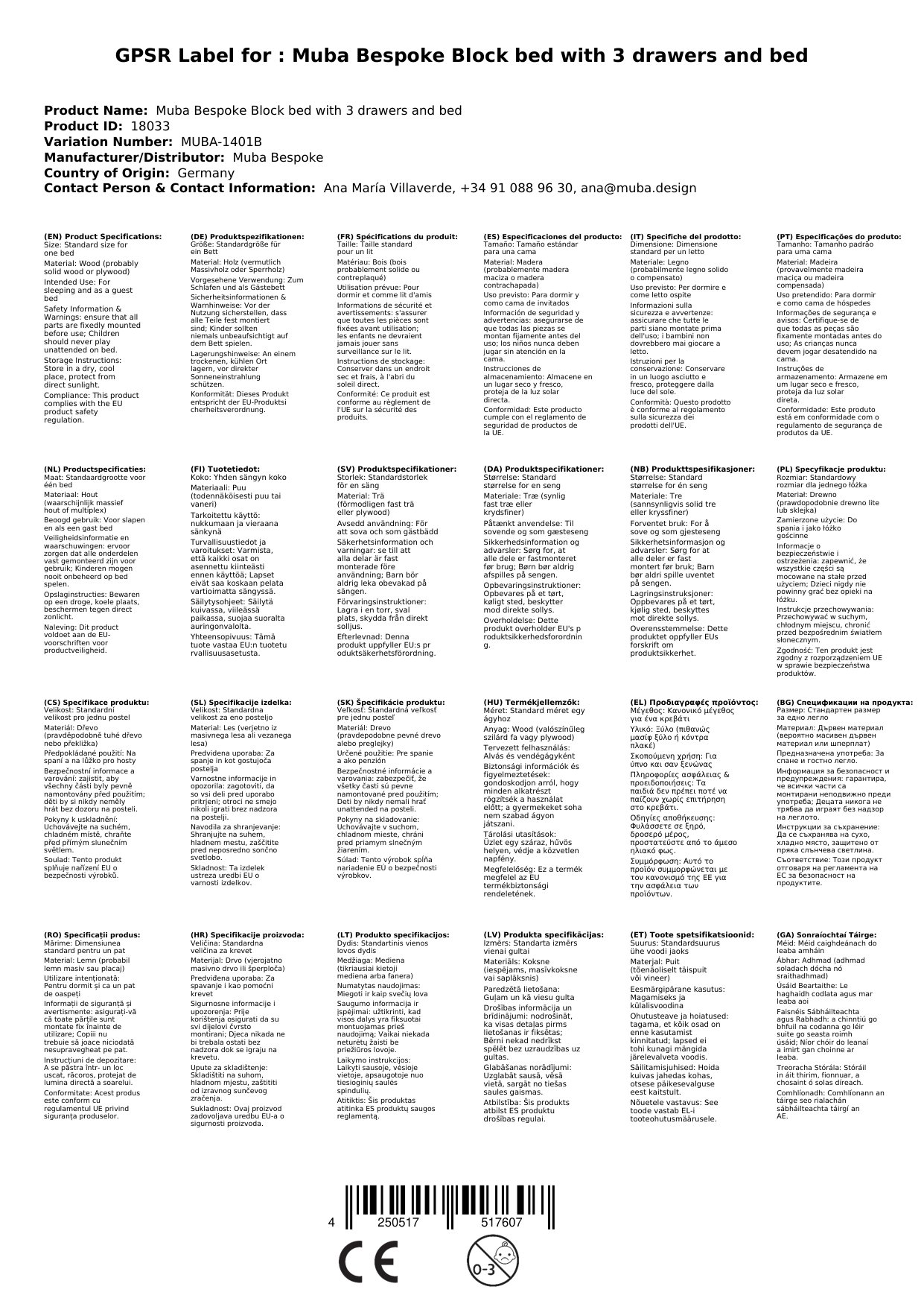 Muba Bespoke Blockbett mit 3 Schubladen und Gästebett