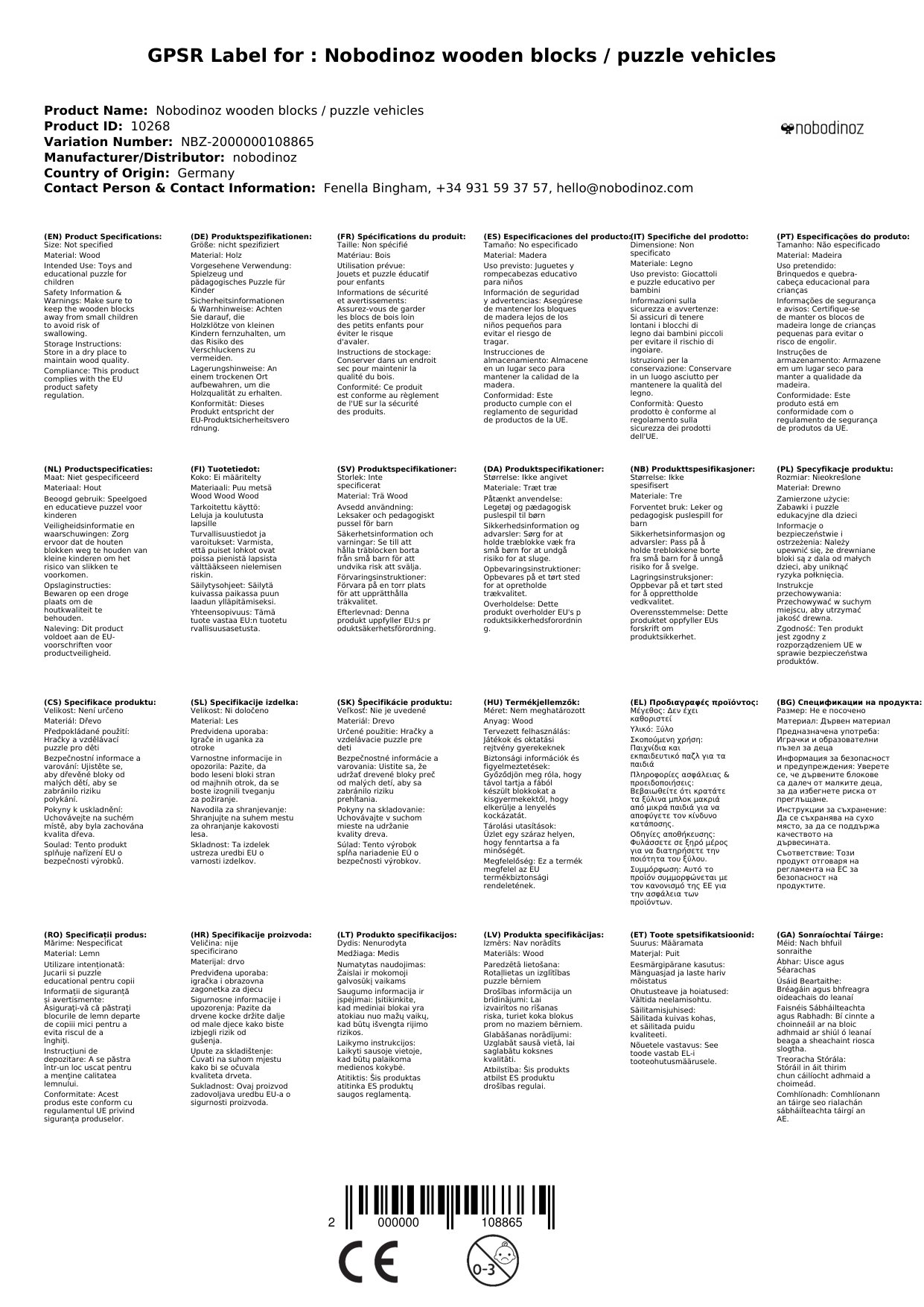 Nobodinoz Holzklötze / Puzzle Fahrzeuge