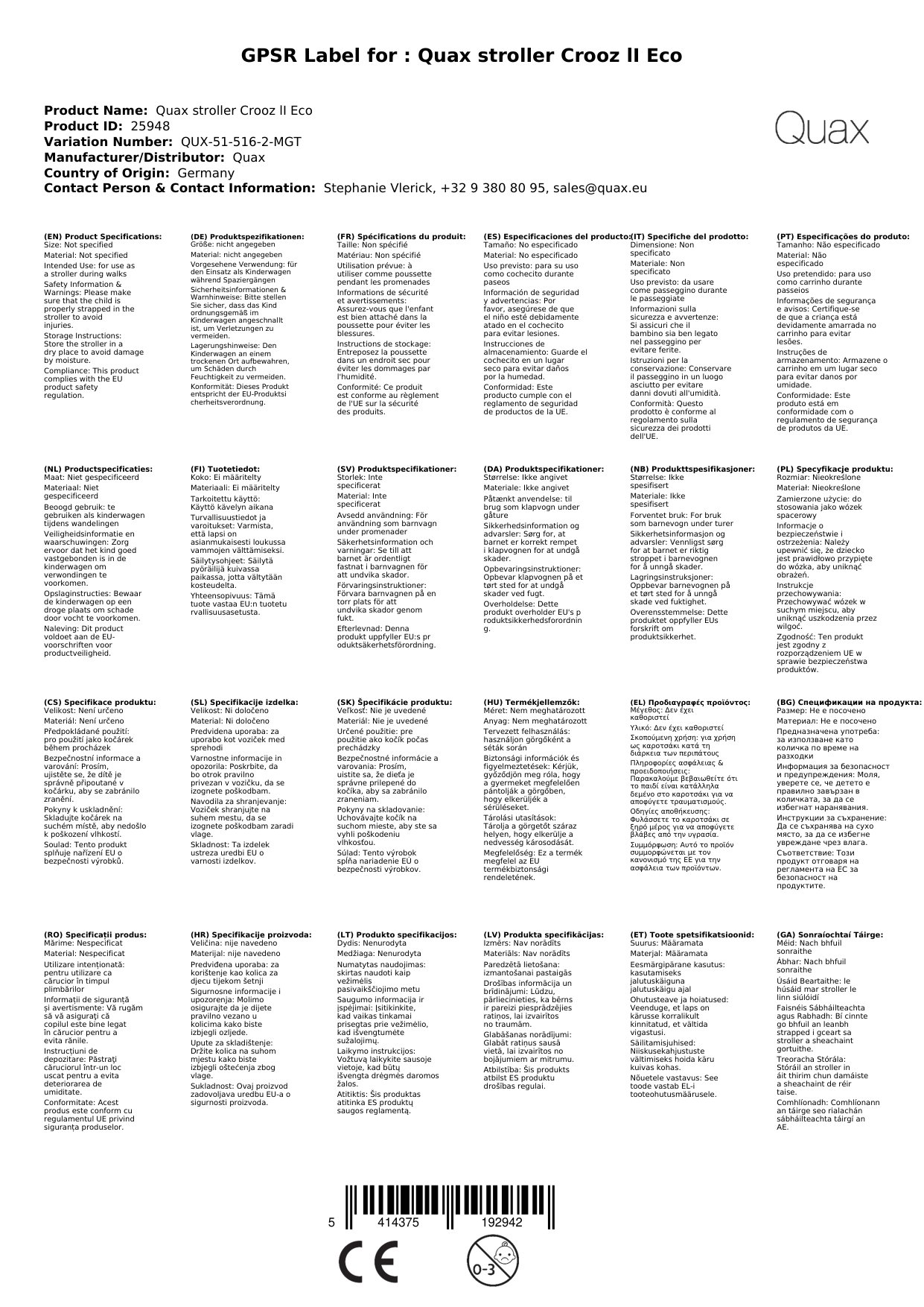 Stellen Sie eine Frage, um mehr über das Produkt zu erfahrenQuax Kinderwagen Crooz lI Eco Taupe