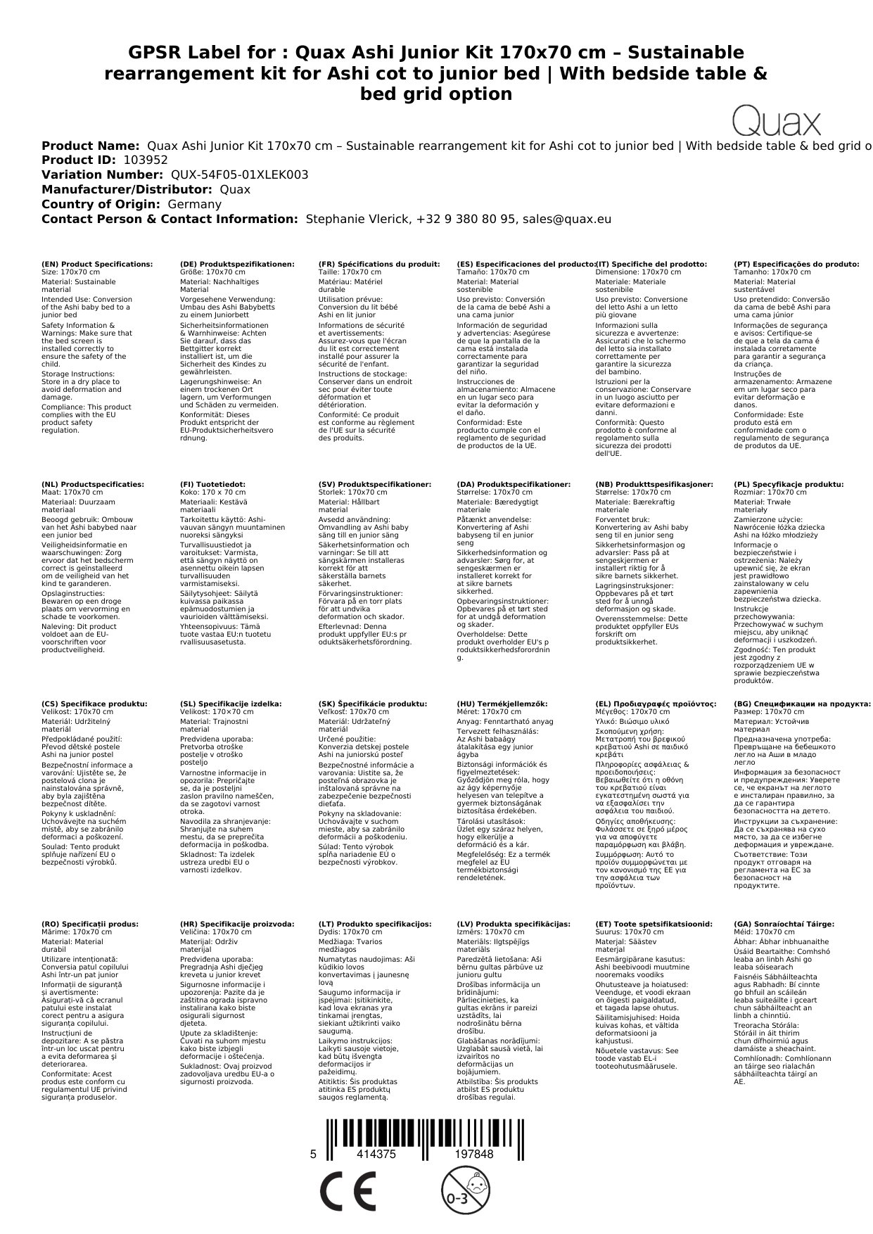 Stellen Sie eine Frage, um mehr über das Produkt zu erfahrenQuax Ashi Junior Kit 170x70 cm – Nachhaltiges Umbauset für Ashi Babybett zum Juniorbett | Mit Nachttisch & Bettgitter-Option