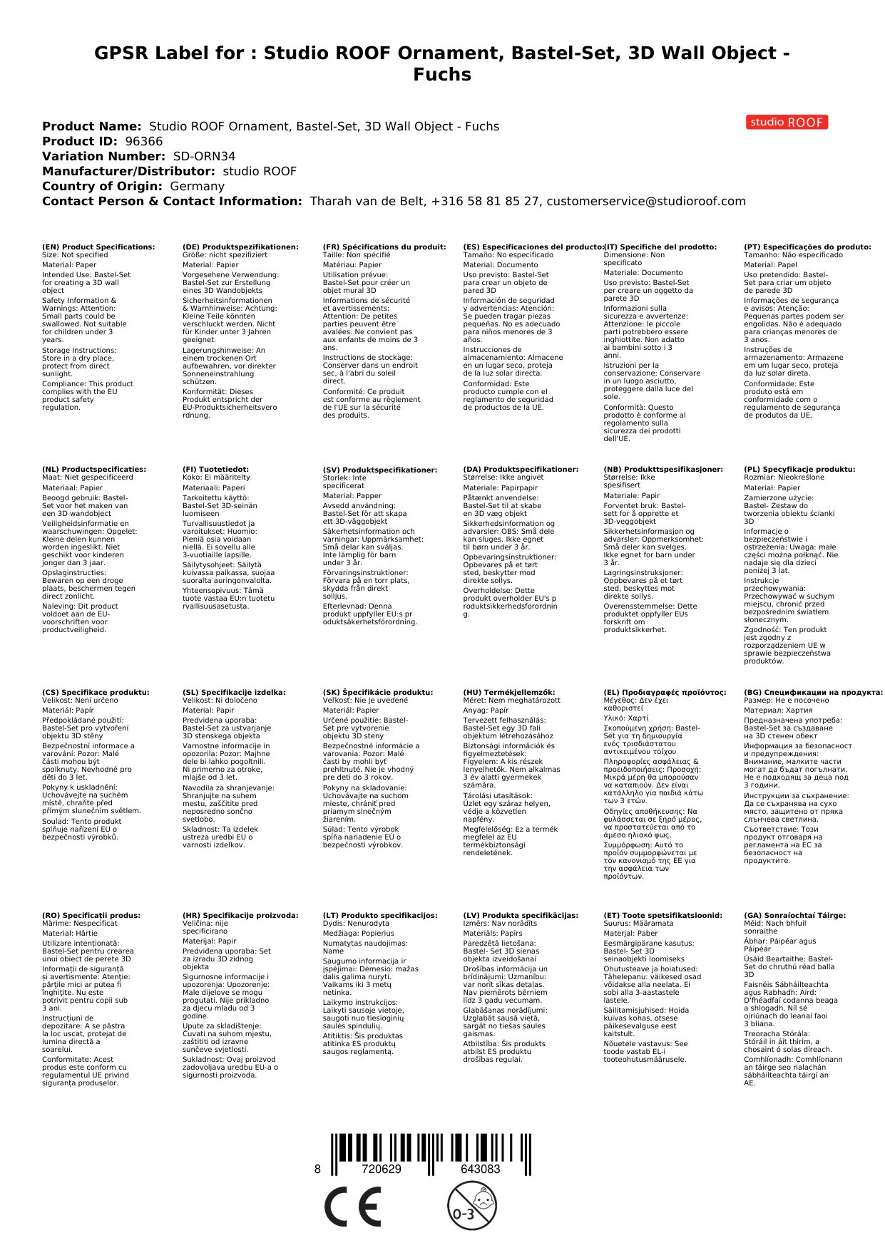Stellen Sie eine Frage, um mehr über das Produkt zu erfahrenStudio ROOF Ornament, Bastel-Set, 3D Wandobjekt - Fuchs