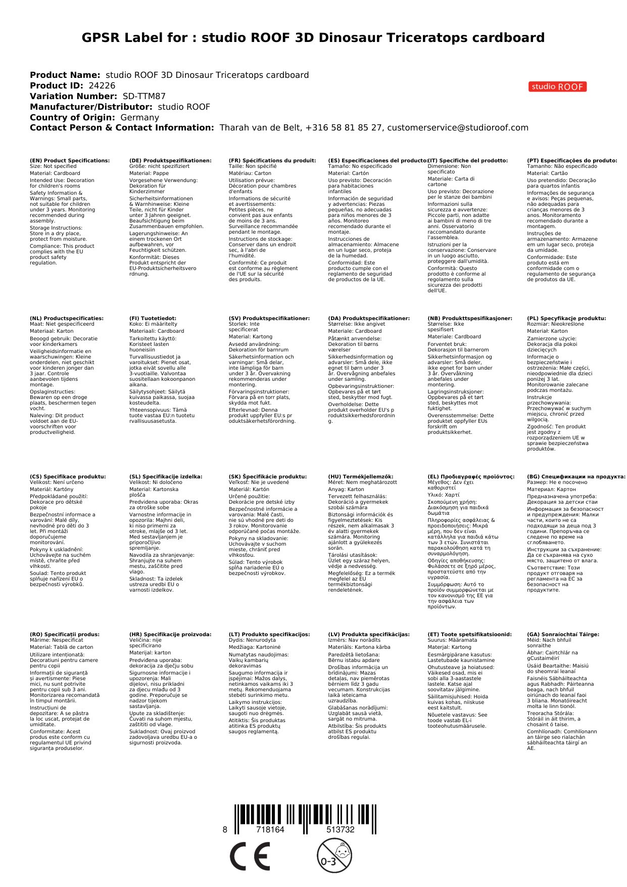 studio ROOF 3D Dinosaurier Triceratops Pappe
