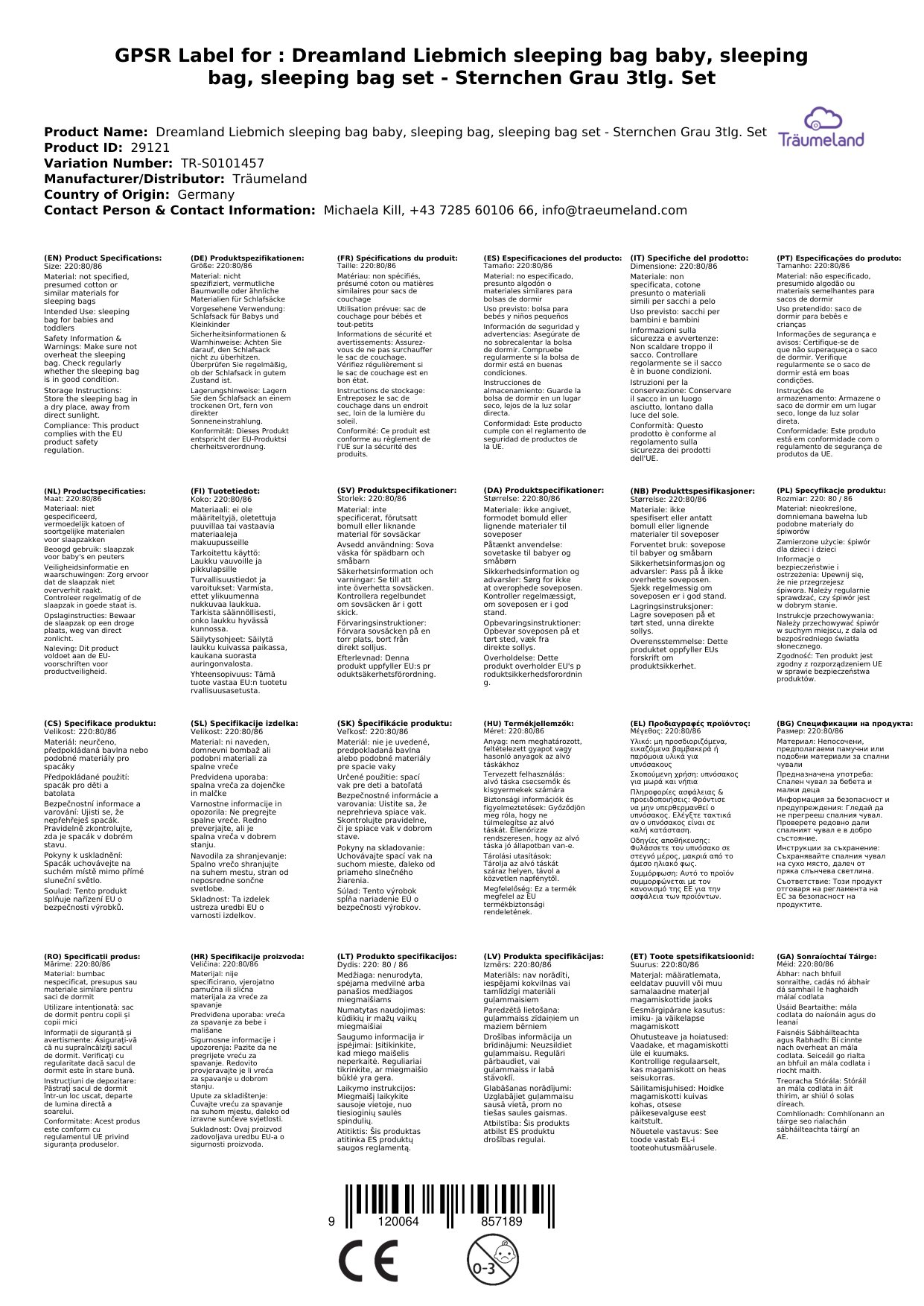 Sorgen Sie für den ungestörten Schlaf Ihres Babys mit dem Träumeland Liebmich Schlafsack Baby, Kinderschlafsack, Schlummersack, Innenschlafsack Set - Sternchen grau und erleben Sie eine ruhige Nacht.