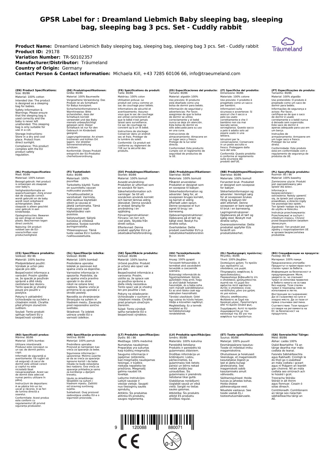 Stellen Sie eine Frage, um mehr über das Produkt zu erfahrenTräumeland Liebmich Baby Schlafsack, Kinderschlafsack, Schlummersack, Innenschlafsack Set - Kuschelhase