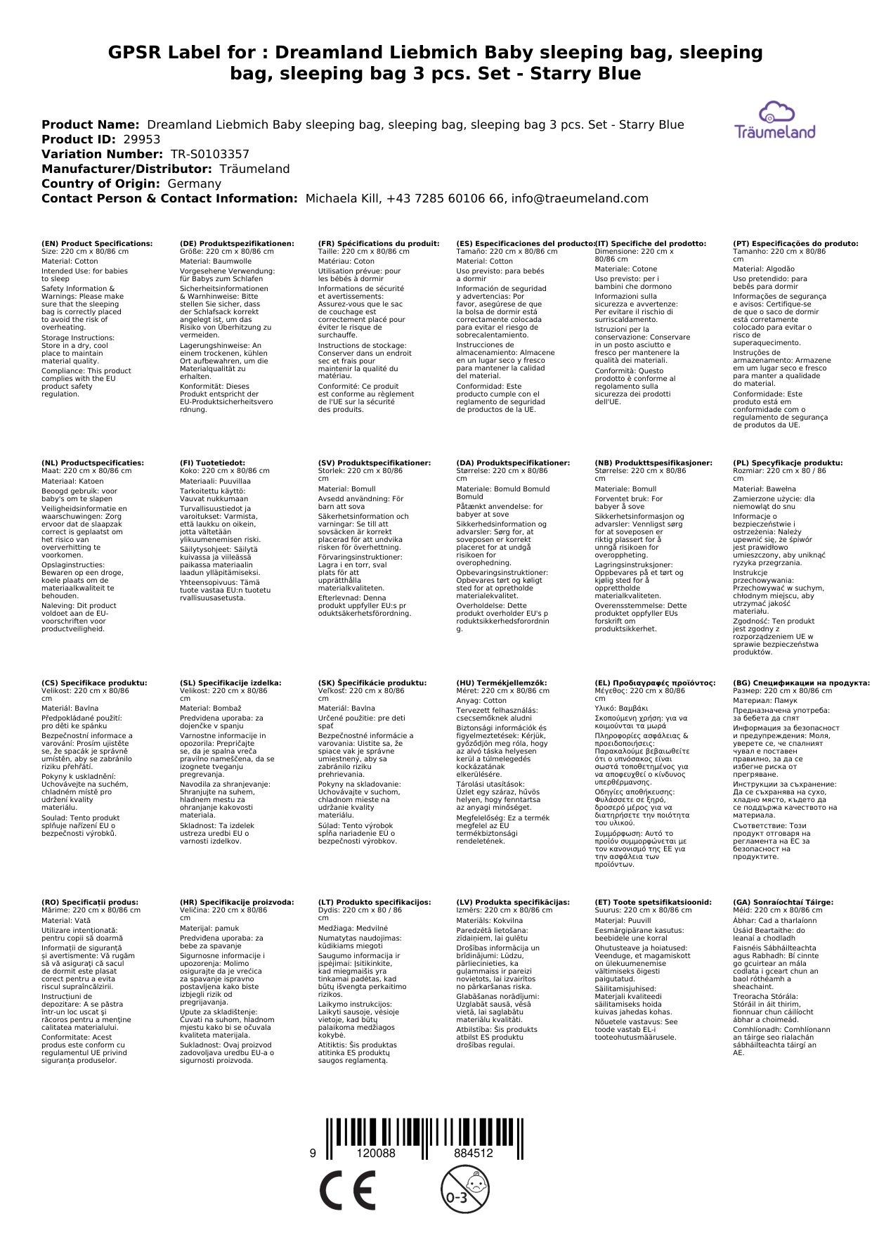 Stellen Sie eine Frage, um mehr über das Produkt zu erfahrenTräumeland Liebmich Baby Schlafsack, Kinderschlafsack, Schlummersack, Innenschlafsack Set - Sternentraum Blau