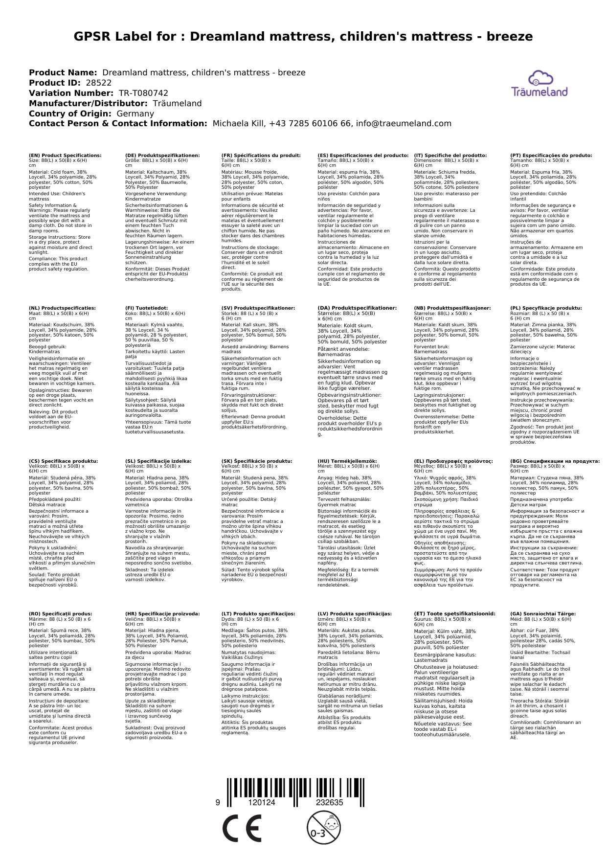Stellen Sie eine Frage, um mehr über das Produkt zu erfahrenTräumeland Matratze, Kindermatratze - Brise Light