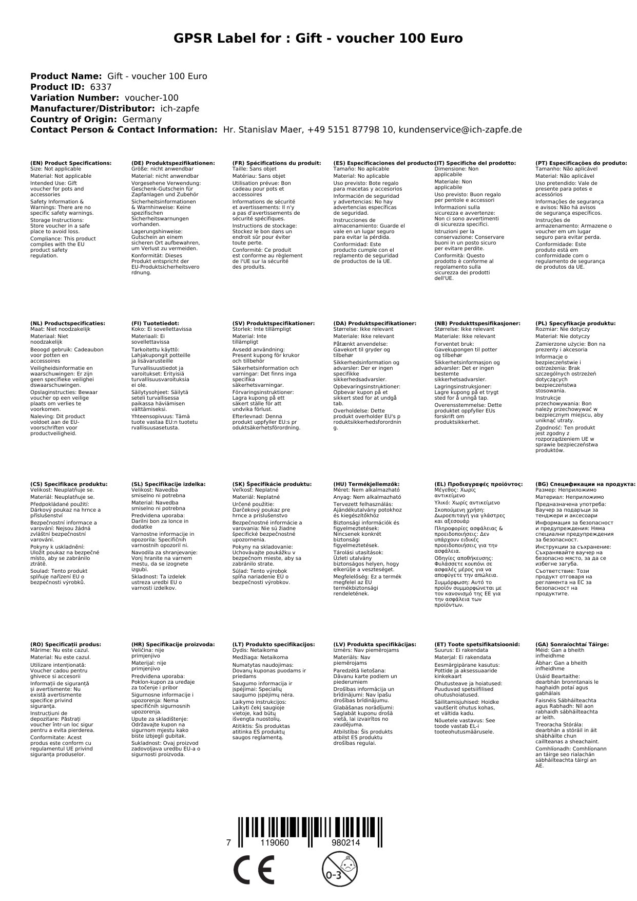 • Nach dem Kauf erhalten Sie direkt eine elektronische Version des Gutscheins über 100 Euro.