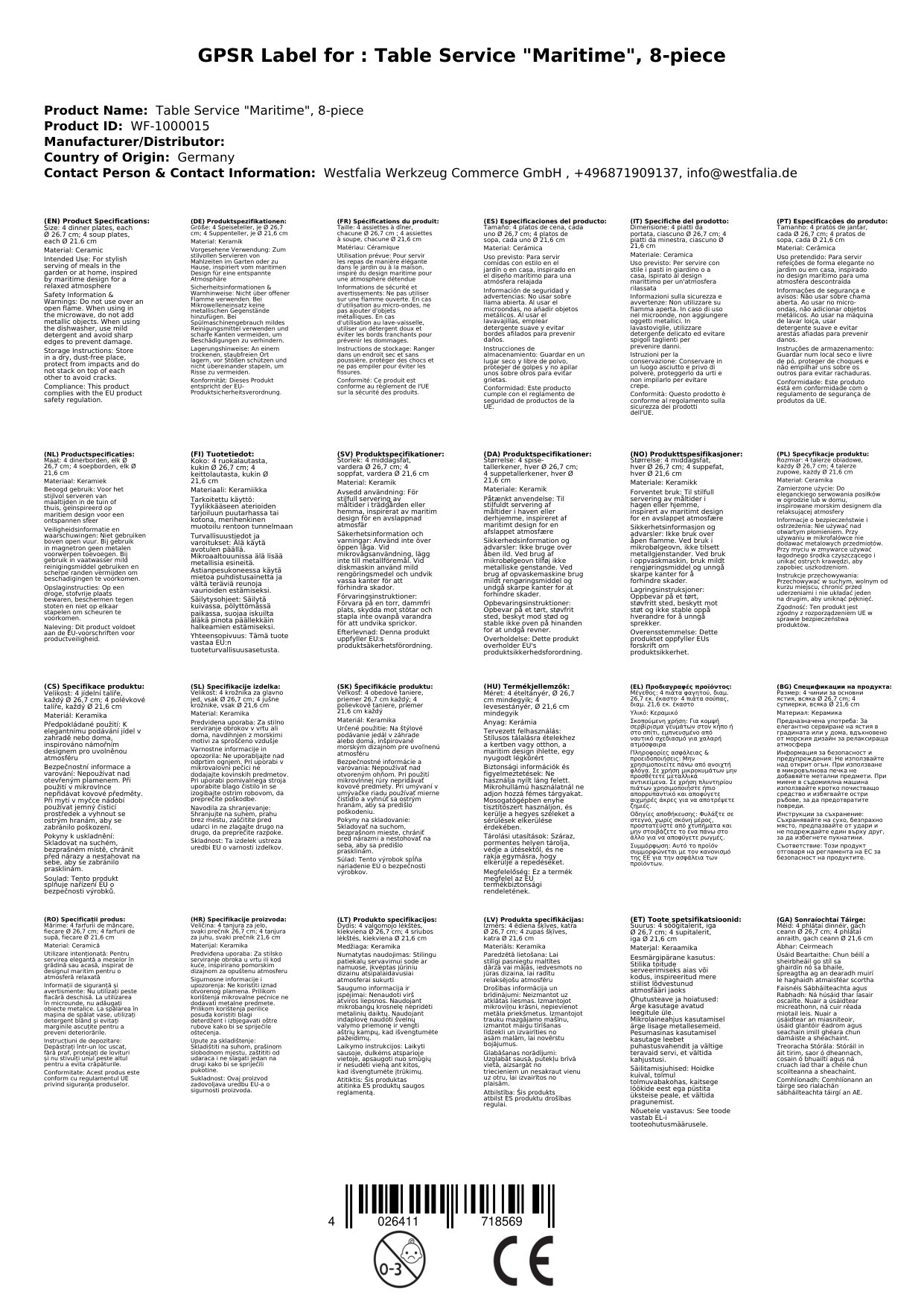 Das Esstischset "Maritim" bringt einen Hauch mediterranen Charme in Ihr Zuhause. Die Teller bringen eine erfrischende Sommerstimmung auf Ihren Tisch, egal ob Sie Ihr Abendessen zu Hause, im Garten oder am Meer genießen. Das Set ist für die Mikrowelle und die Spülmaschine geeignet.