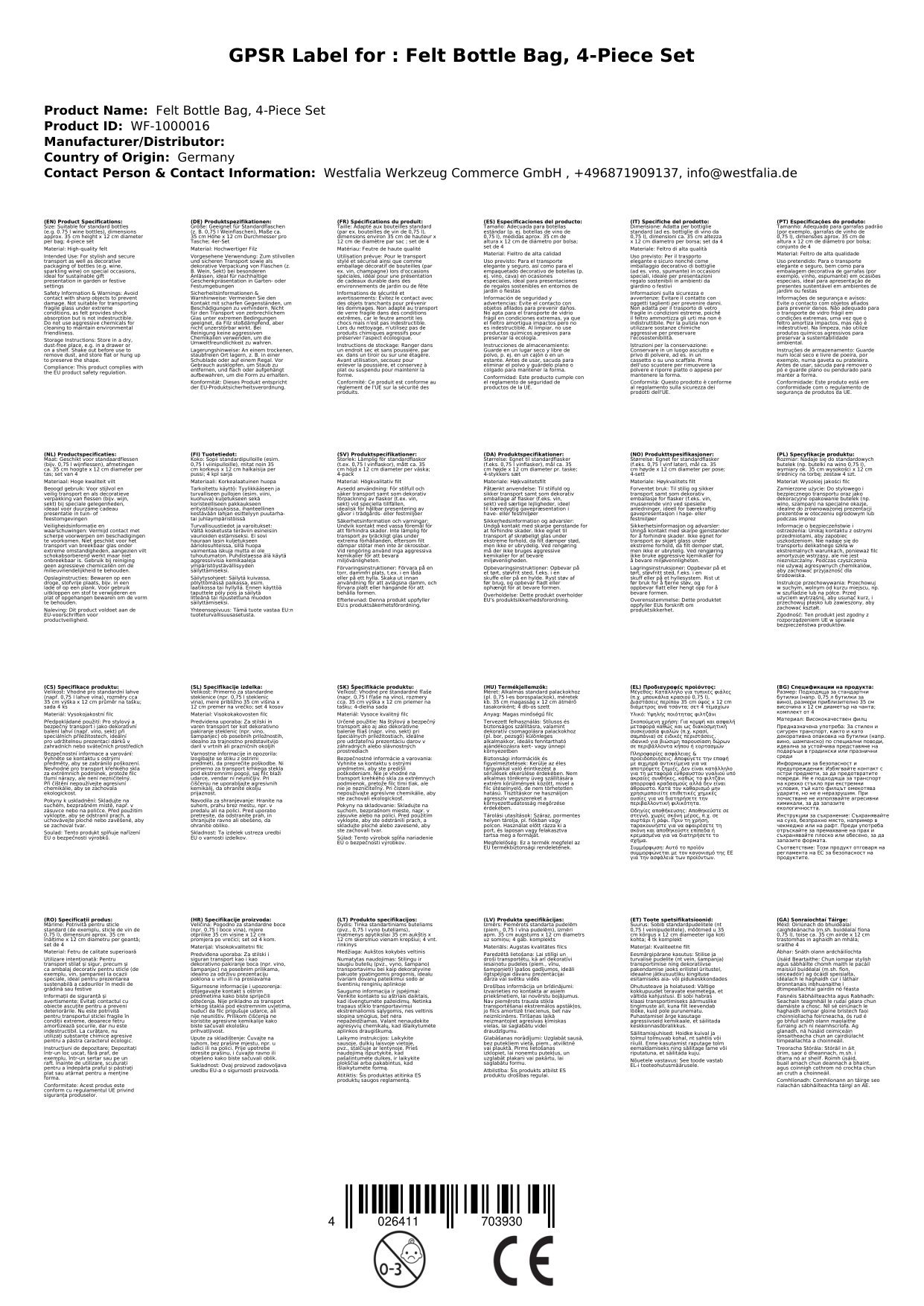 Flaschentasche aus Filz, 4er-Set