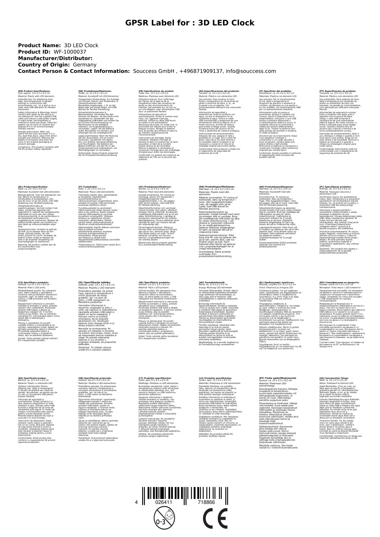 Die Uhr wird mittels USB-Kabel betrieben. Die mitgelieferte CR2032 Batterie versorgt die interne Uhr, damit diese die Zeit nicht vergisst. Die 3D LED-Uhr überzeugt durch cooles Design und vielfältige Anzeige-Optionen.