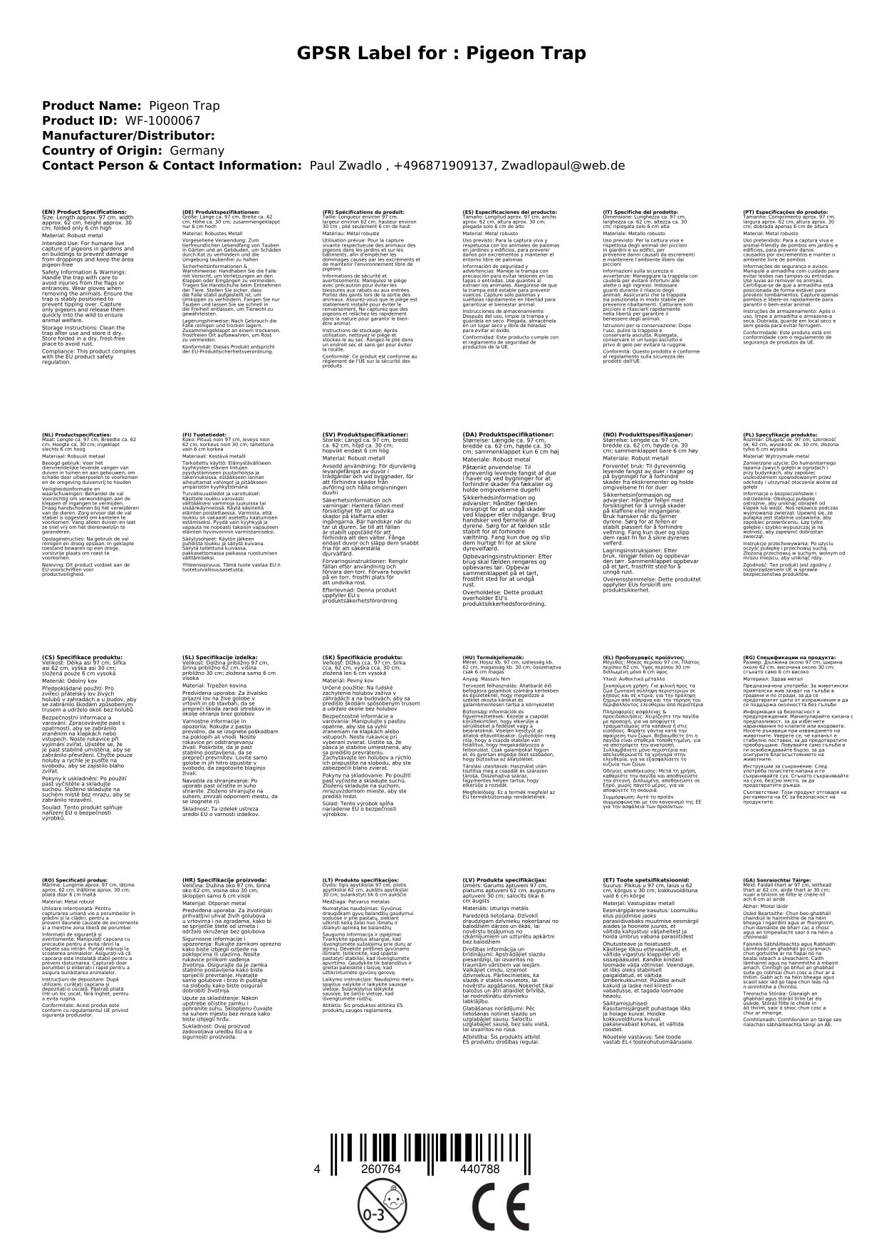 Stellen Sie eine Frage, um mehr über das Produkt zu erfahrenErleichtern Sie sich das Leben mit der bewährten Lebendfalle für Tauben von Westfalia! Diese klappbare Falle eignet sich perfekt für den Mehrfachfang von bis zu 20 Tauben und ermöglicht Tagesfänge von bis zu 50 - 60 Tauben.