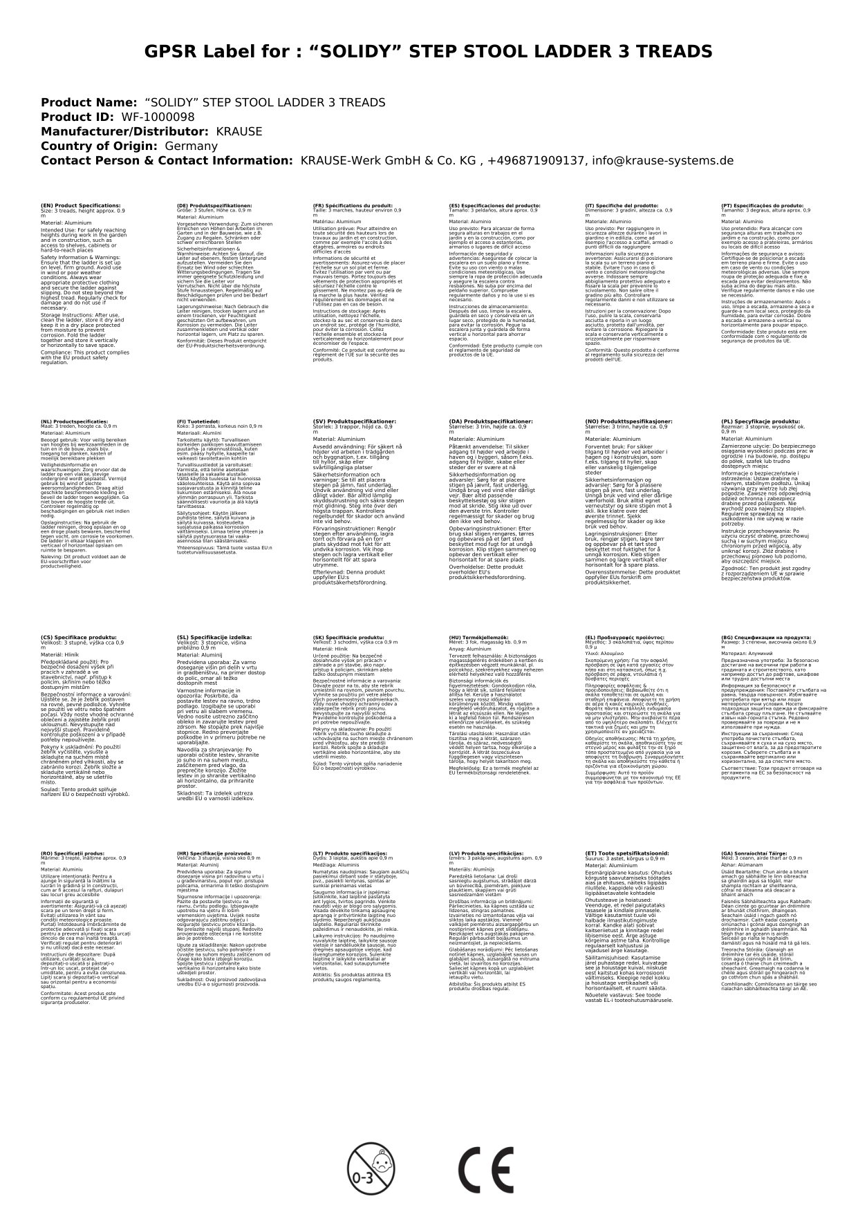„SOLIDY“ STUFEN-STEHLEITER 3 STUFEN