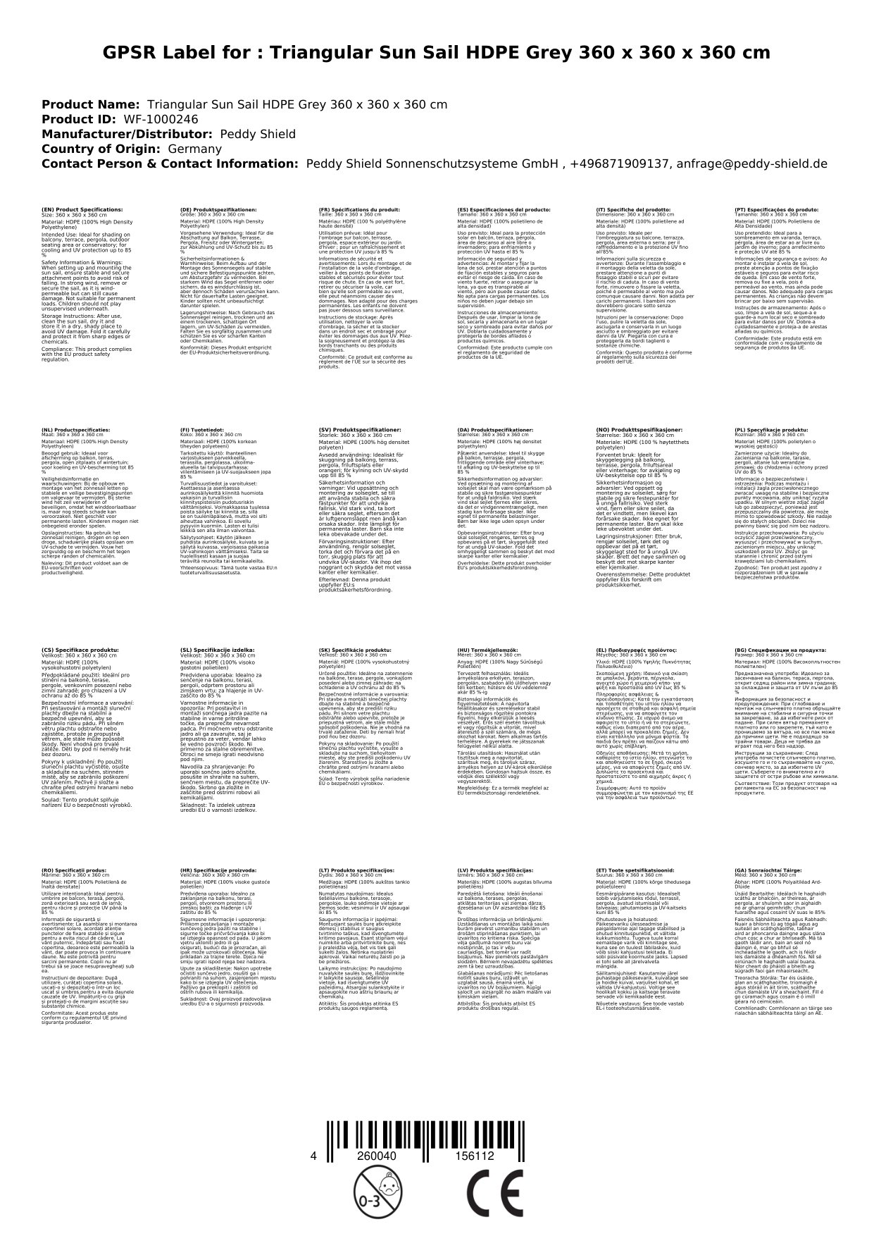 Stellen Sie eine Frage, um mehr über das Produkt zu erfahrenUnverwüstliche Qualitäts – Sonnensegel aus HDPE – Material (100% High Density Polyethylen)
