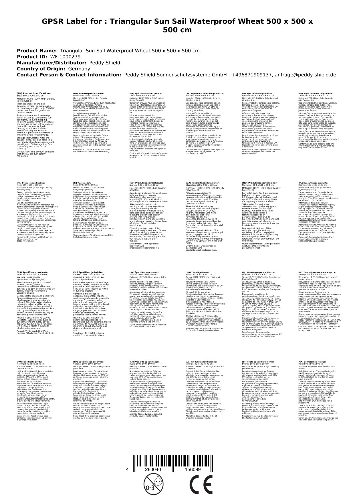 Stellen Sie eine Frage, um mehr über das Produkt zu erfahrenUnverwüstliche Qualitäts – Sonnensegel aus HDPE – Material (100% High Density Polyethylen)