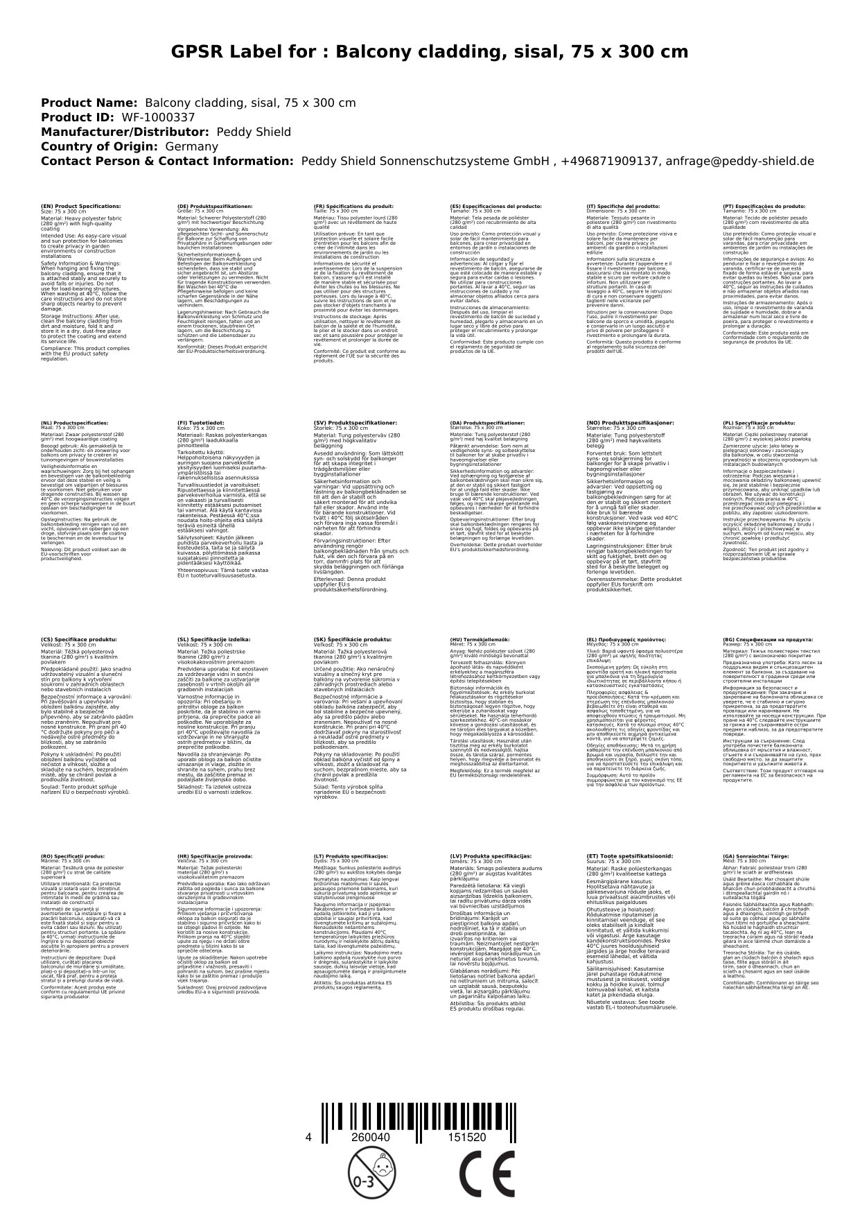 - Inklusive Kordel (5 m oder 7 m) zur Befestigung entlang des Handlaufes oder der Balkonbrüstung