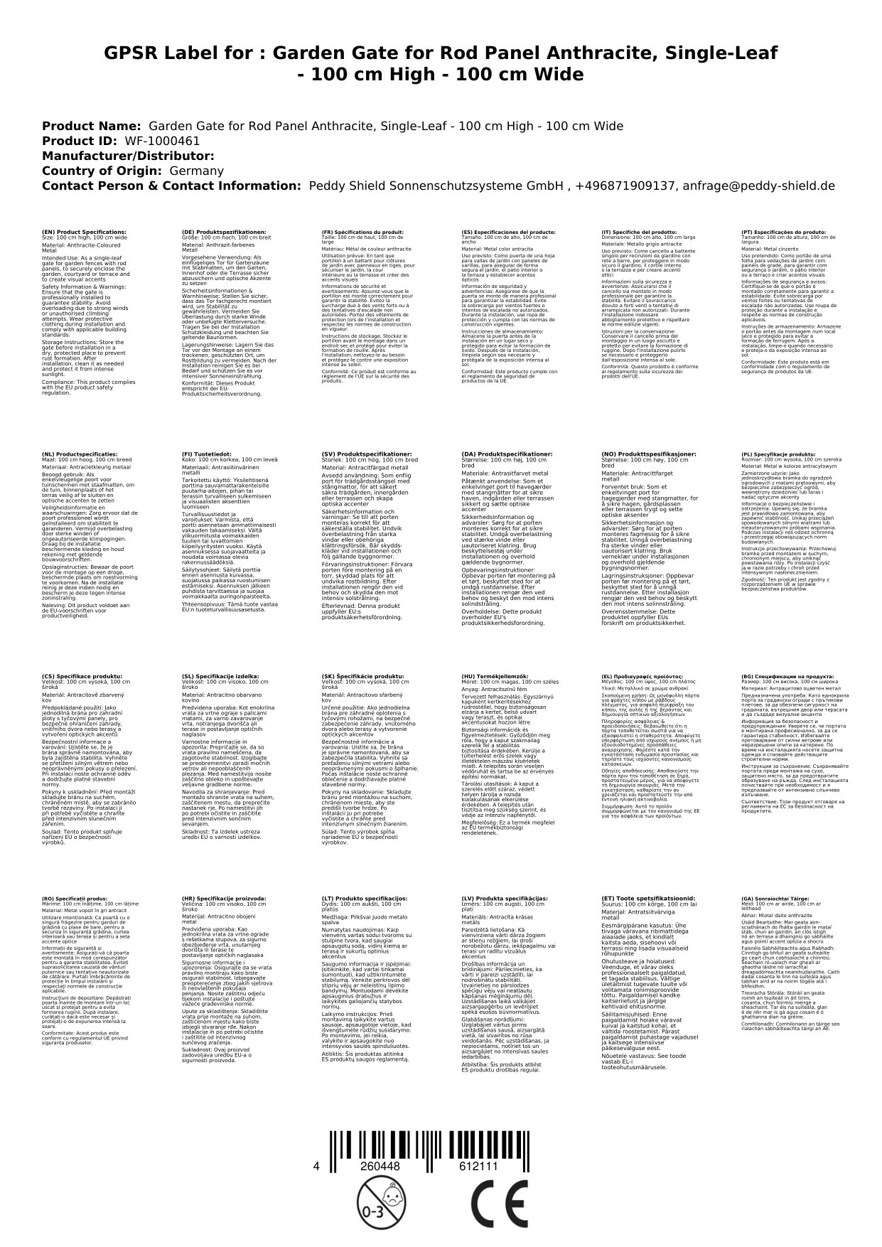 Gartentor für Stabmatte anthrazit, einflügelig - 100 cm hoch - 100 cm breit