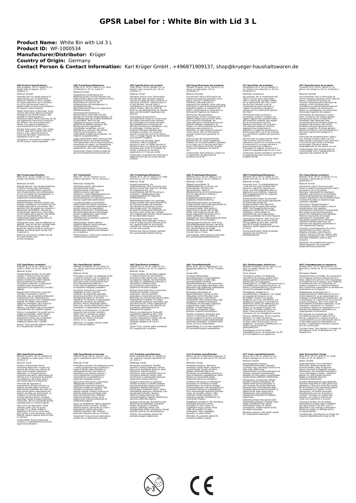 - Mülleimer weiß mit Deckel 3 l