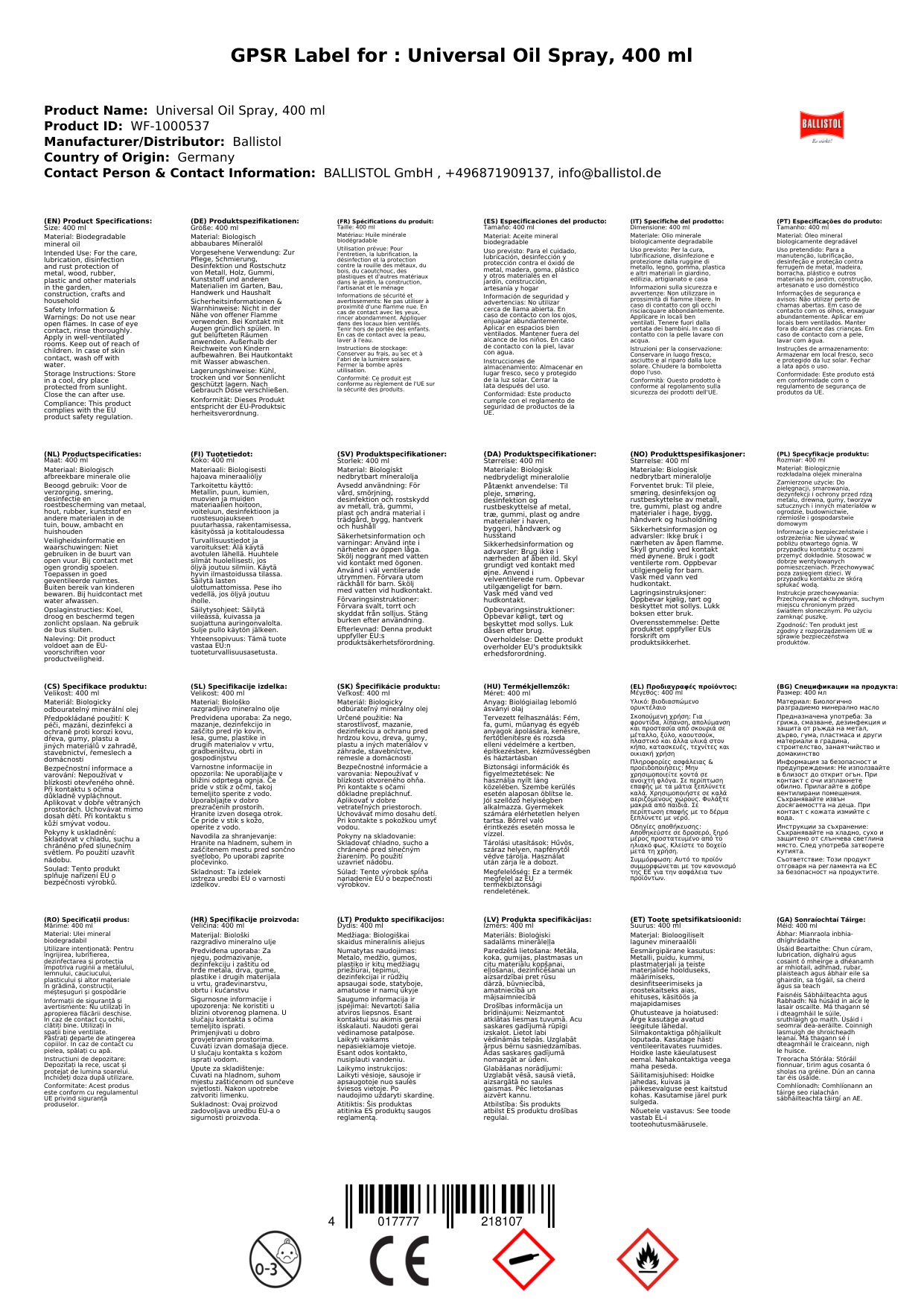 | Brand | Ballistol |