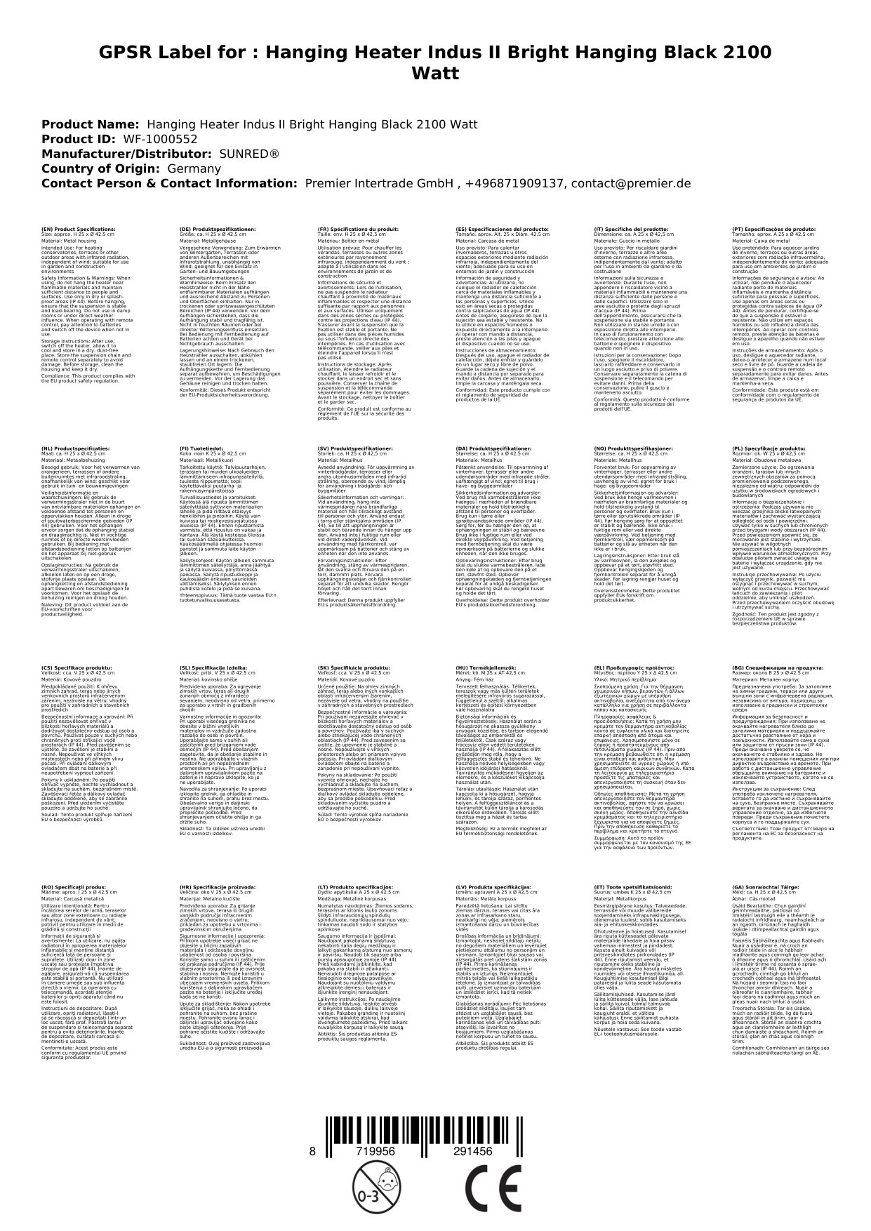 Hängeheizstrahler Indus II Bright Hanging Black 2100 Watt